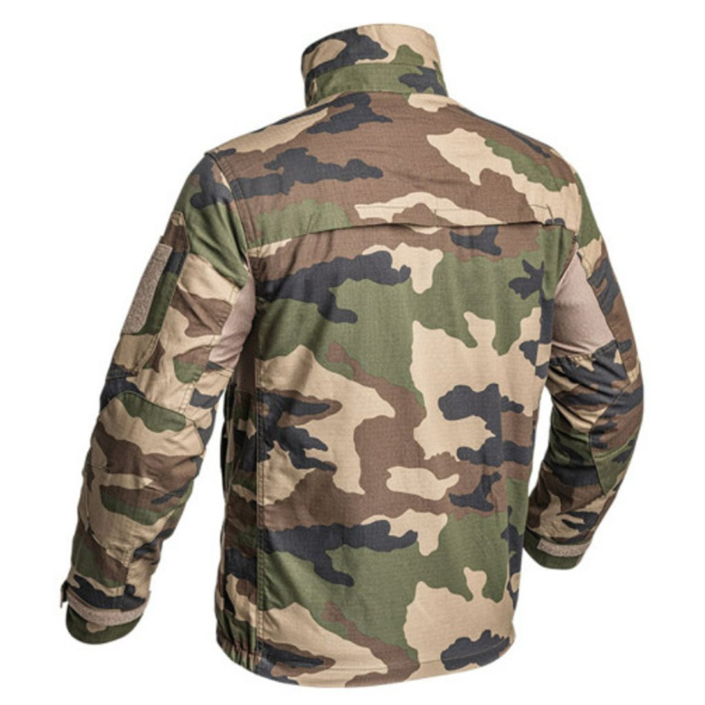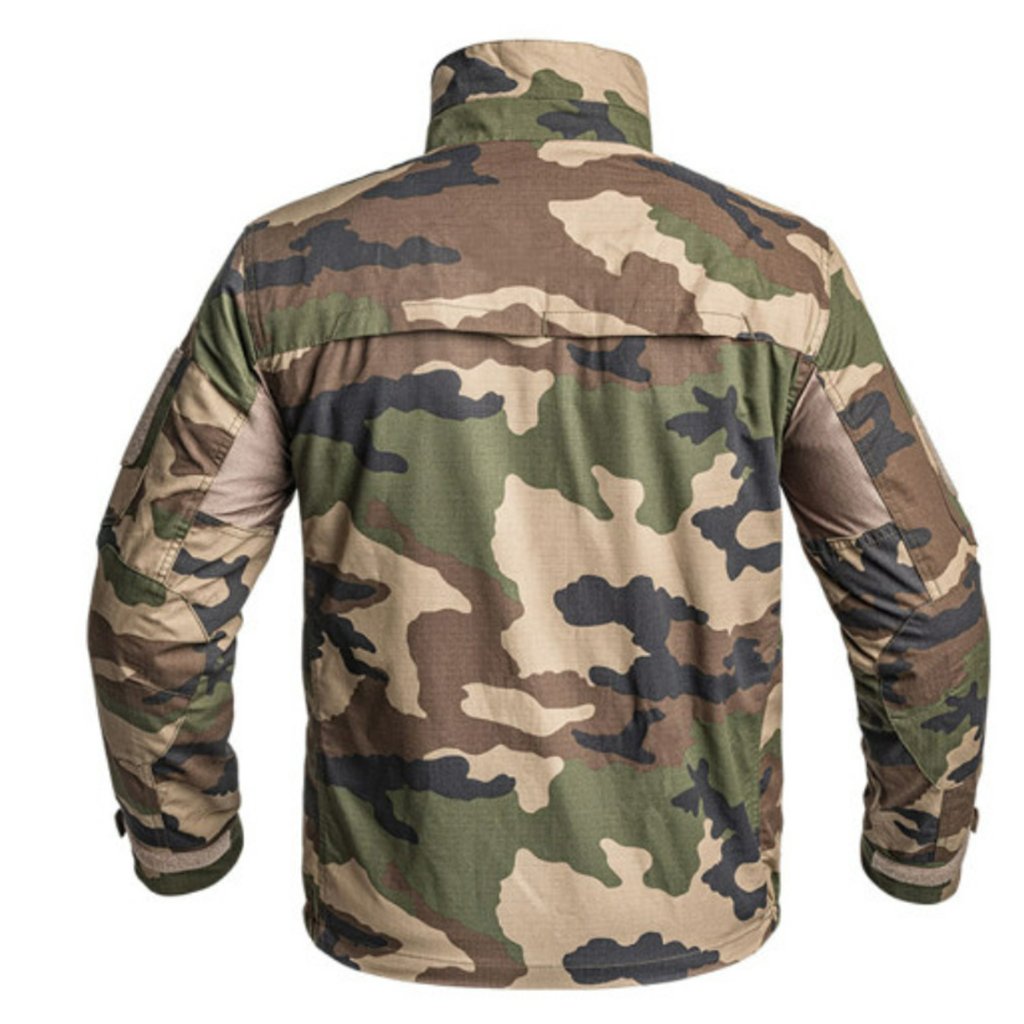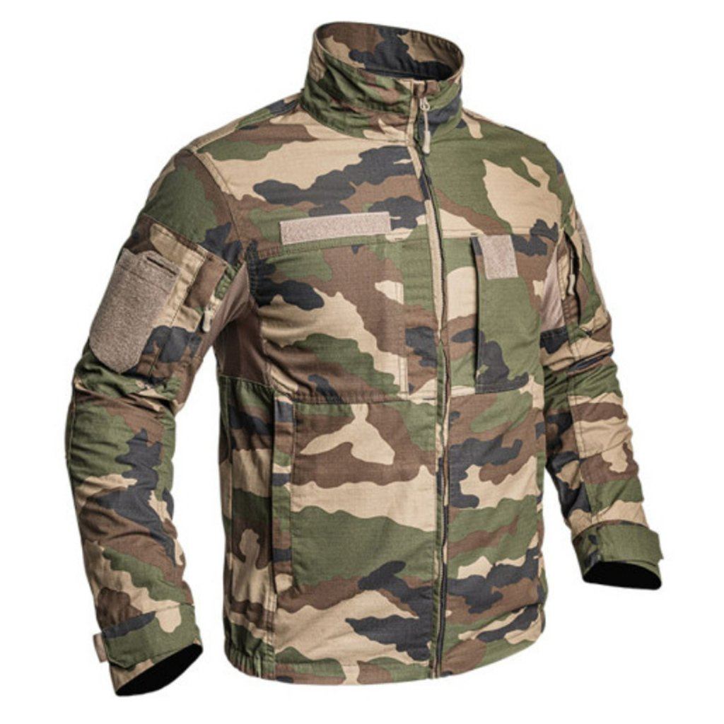 A-10 Bunda FIGHTER standardní French CCE woodland – A10 Equipment – Taktická bunda typu „Fighter“ od A10 Equipment je vyrobena z pevné tkaniny Ripstop 5.0 s úpravami TEFLON a IR-PROTECT. Nabízí vynikající odolnost, funkčnost, ergonomii a pohodlí díky propracovanému střihu, větracím otvorům a množství kapes pro efektivní organizaci vybavení.