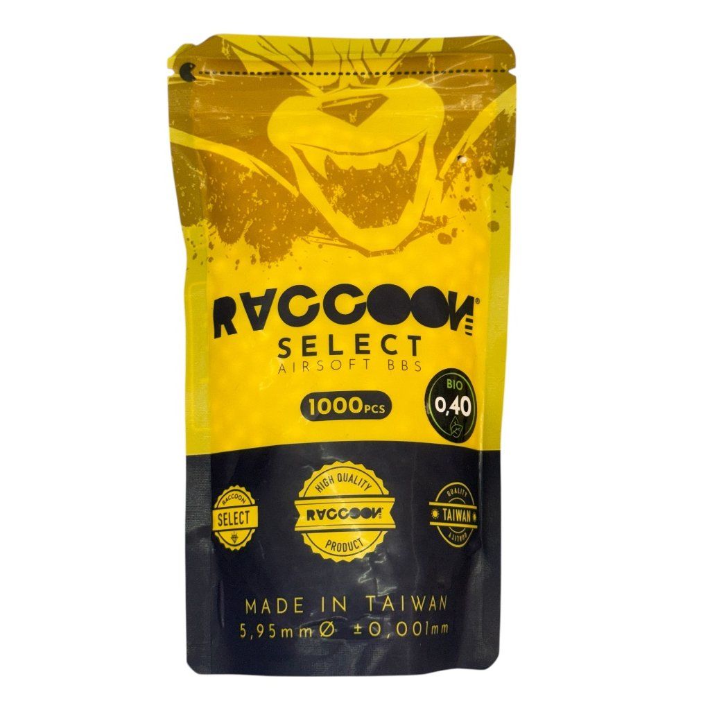 Airsoft kuličky BB Raccoon SELECT Bio 0,40g 1000ks bílé jsou vysoce přesné biologicky rozložitelné BB střelivo pro náročné hráče a odstřelovače.