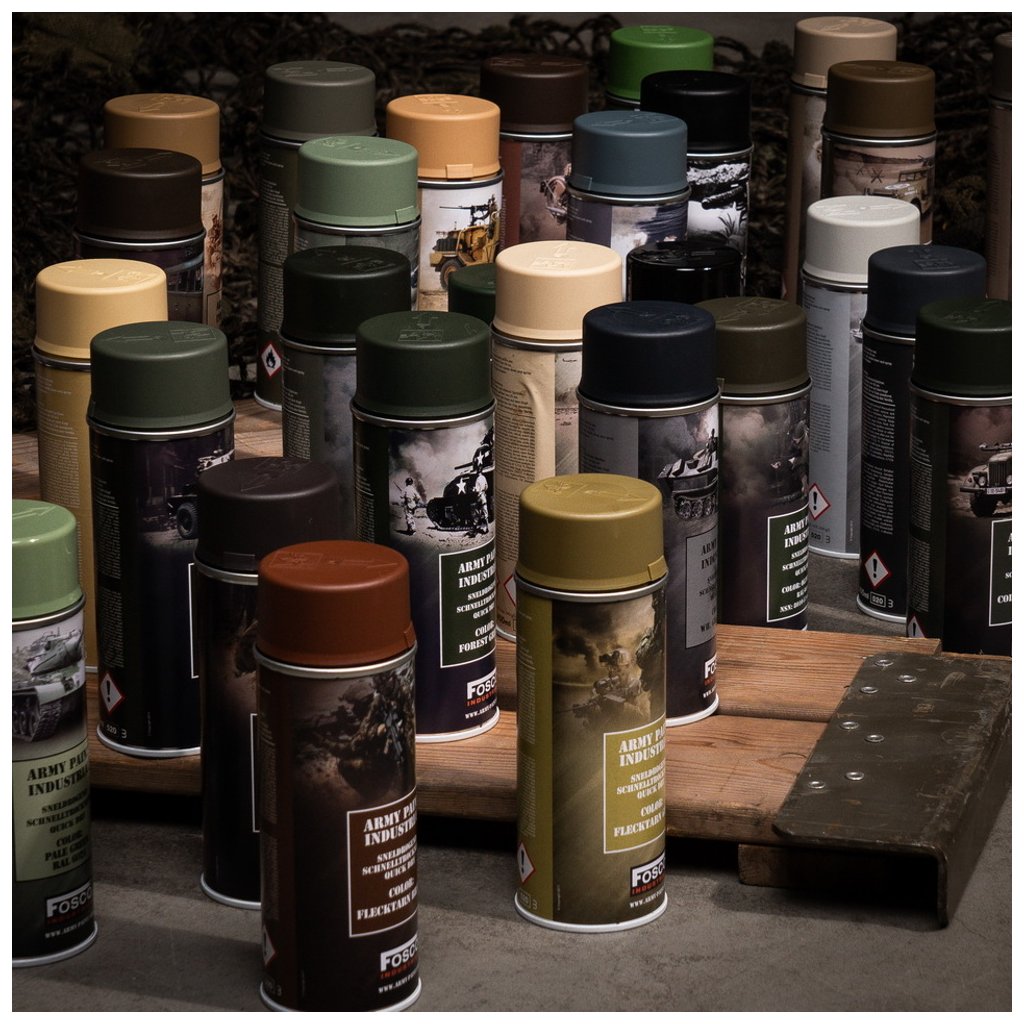 Produkt s názvem Army Spray maskovací ve spreji 400ml (flecktarn zelená) je výrobek značky FOSCO. Jedná se o rychleschnoucí kamuflážní barvu ve spreji, která je určena pro maskování různých předmětů, jako jsou zbraně, technické vybavení nebo součásti výstroje. Sprej lze aplikovat na různé materiály, včetně kovu, plastu, dřeva a textilu, avšak nejoptimálnější adhezi vykazuje na kovové povrchy. Objem spreje je 400 mililitrů.
