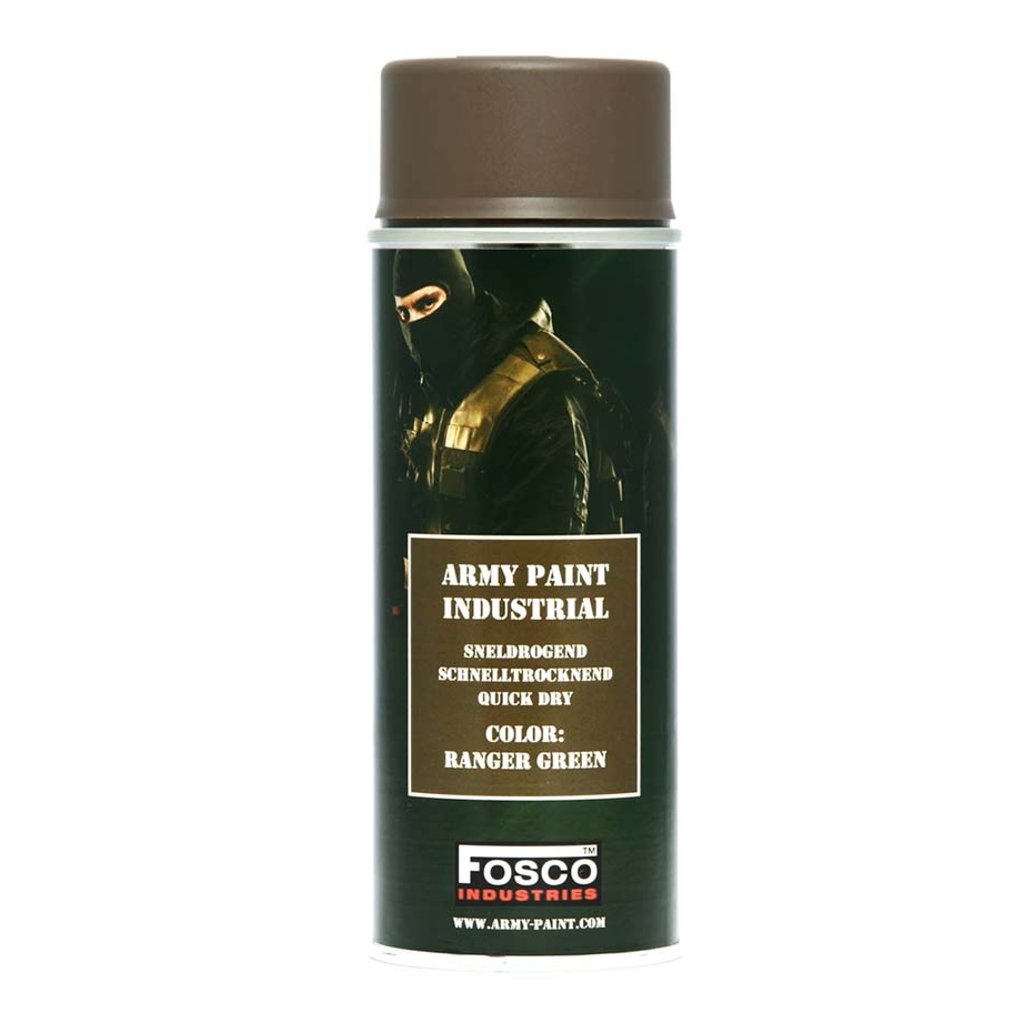 Army Spray maskovací ve spreji 400ml (ranger green) - FOSCO je vysoce kvalitní a rychleschnoucí kamuflážní barva určená pro maskování zbraní a dalšího vybavení. Sprej lze aplikovat na různé materiály, jako je kov, plast, dřevo a textil, přičemž nejlepší adhezi vykazuje na kovových površích. Uživatel může vytvořit vlastní maskovací vzor kombinací různých barev a aplikací přes různé materiály, jako jsou listy, větvičky nebo kousky tkaniny.