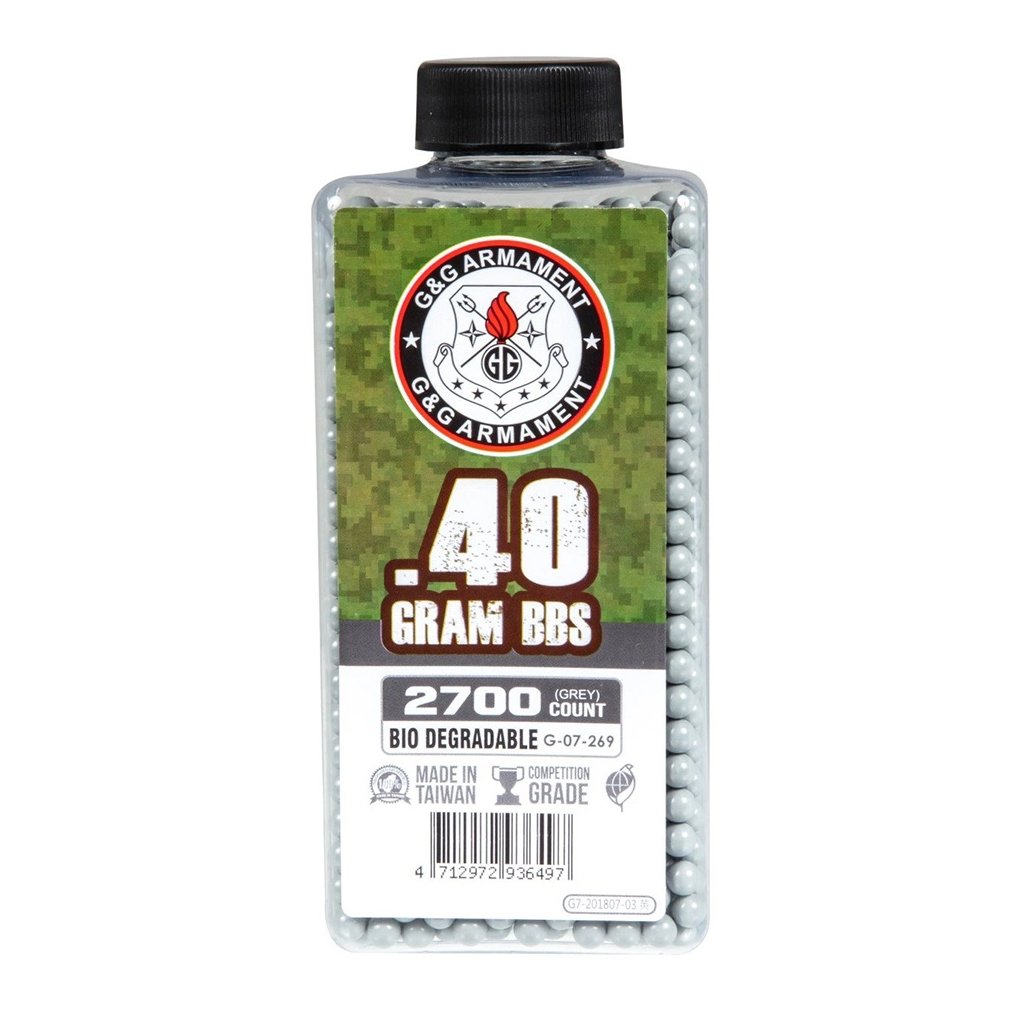 BB G&G Perfect BIO 0.40g/2700 (šedivé) – Biologicky odbouratelné kuličky o hmotnosti 0,40 g pro přesnou střelbu, ideální pro výkonné airsoftové zbraně.