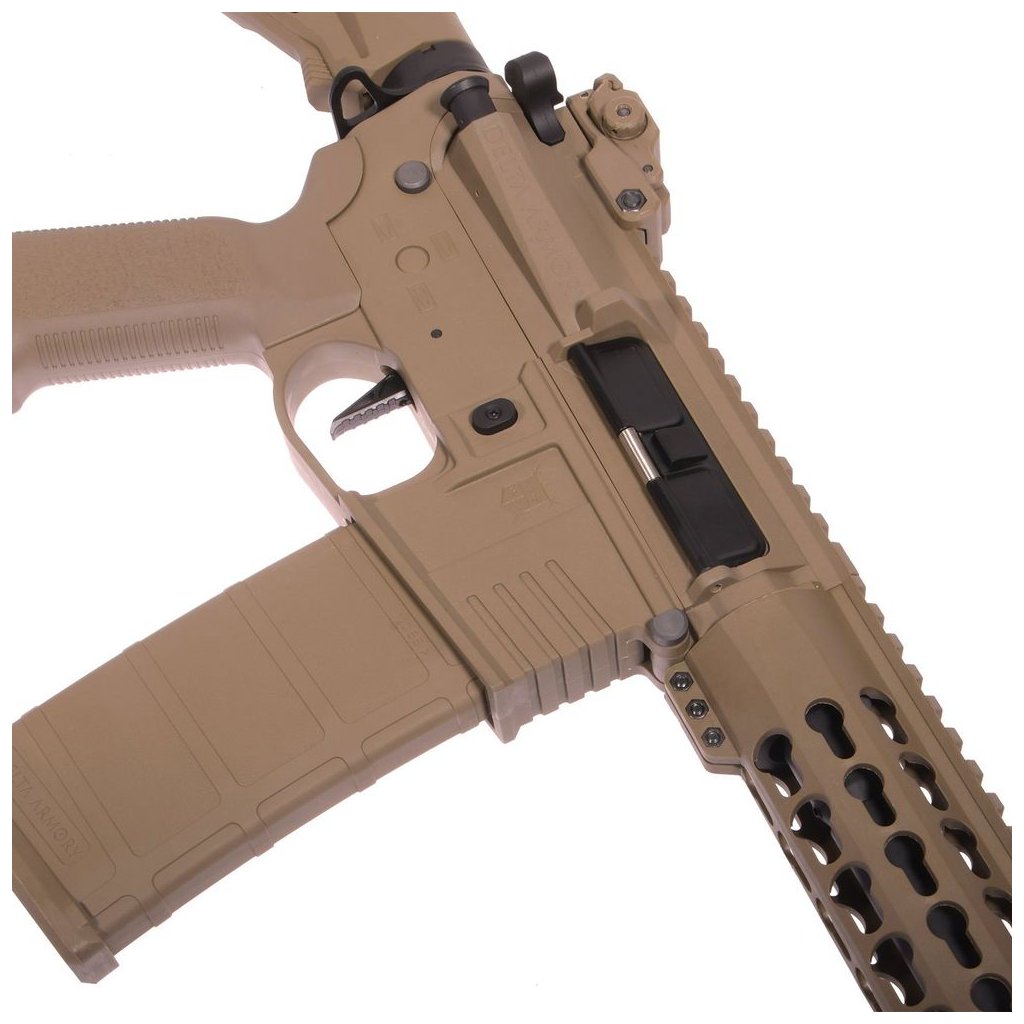 Delta Armory AR15 KeyMod 10" Charlie EAGLE je vysoce kvalitní elektrická airsoftová zbraň, která je navržena pro simulaci bojových situací s maximální realističností. Tento model se vyznačuje 10palcovým KeyMod předpažbím, které umožňuje snadnou personalizaci zbraně přidáním různých příslušenství, jako jsou svítilny, laserové ukazatele a další taktické vybavení. Plastové tělo zbraně je odolné a lehké, což zajišťuje vysokou mobilitu během hry. Jednotka EAGLE zlepšuje citlivost spouště a celkový výkon zbraně.