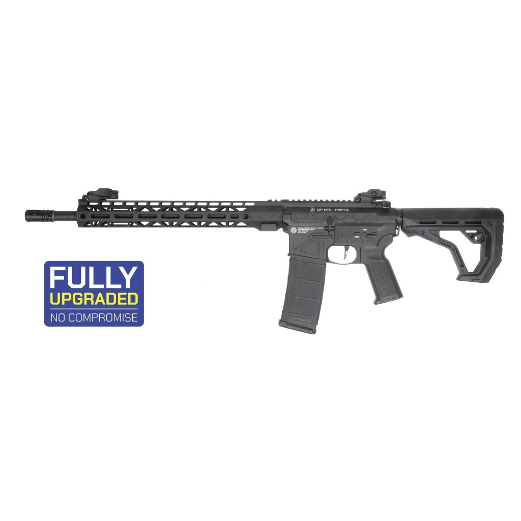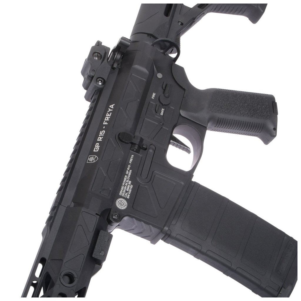 R15 FREYA M-LOK 14" je licencovaná airsoftová replika skutečných zbraní od renomovaného slovenského výrobce Grandpower. Liší se moderním designem těla, které bylo vyvinuto na Slovensku. Delta Armory vybavila tuto zbraň nejnovější opticko-magnetickou procesorovou jednotkou Eagle ETU, která výrazně zlepšuje odezvu spouště a nabízí pokročilé možnosti nastavení.