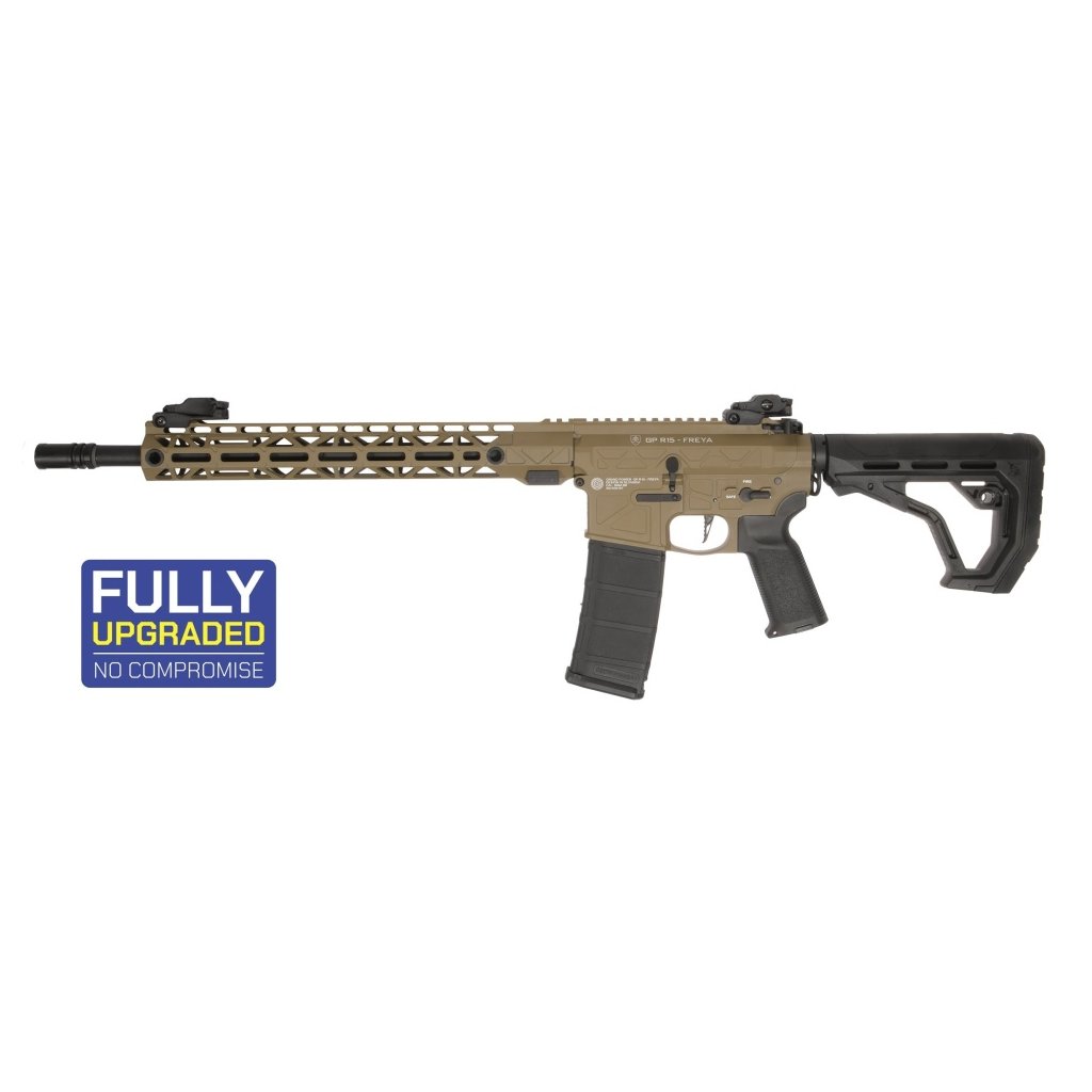 Tato TAN varianta zbraně FREYA R15 M-LOK 14" je ideální pro hráče, kteří hledají taktický vzhled a chtějí perfektně sladit výbavu.