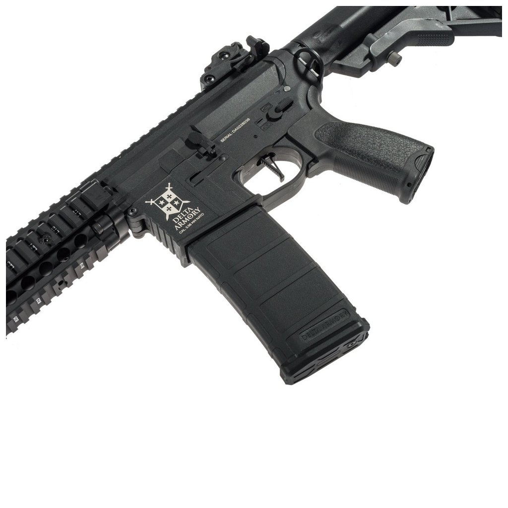 Značka Delta Armory je známá především svými kvalitními replikami pušek M4 za výbornou cenu. Dále se však zaměřuje i na airsoftové doplňky a taktické vybavení.