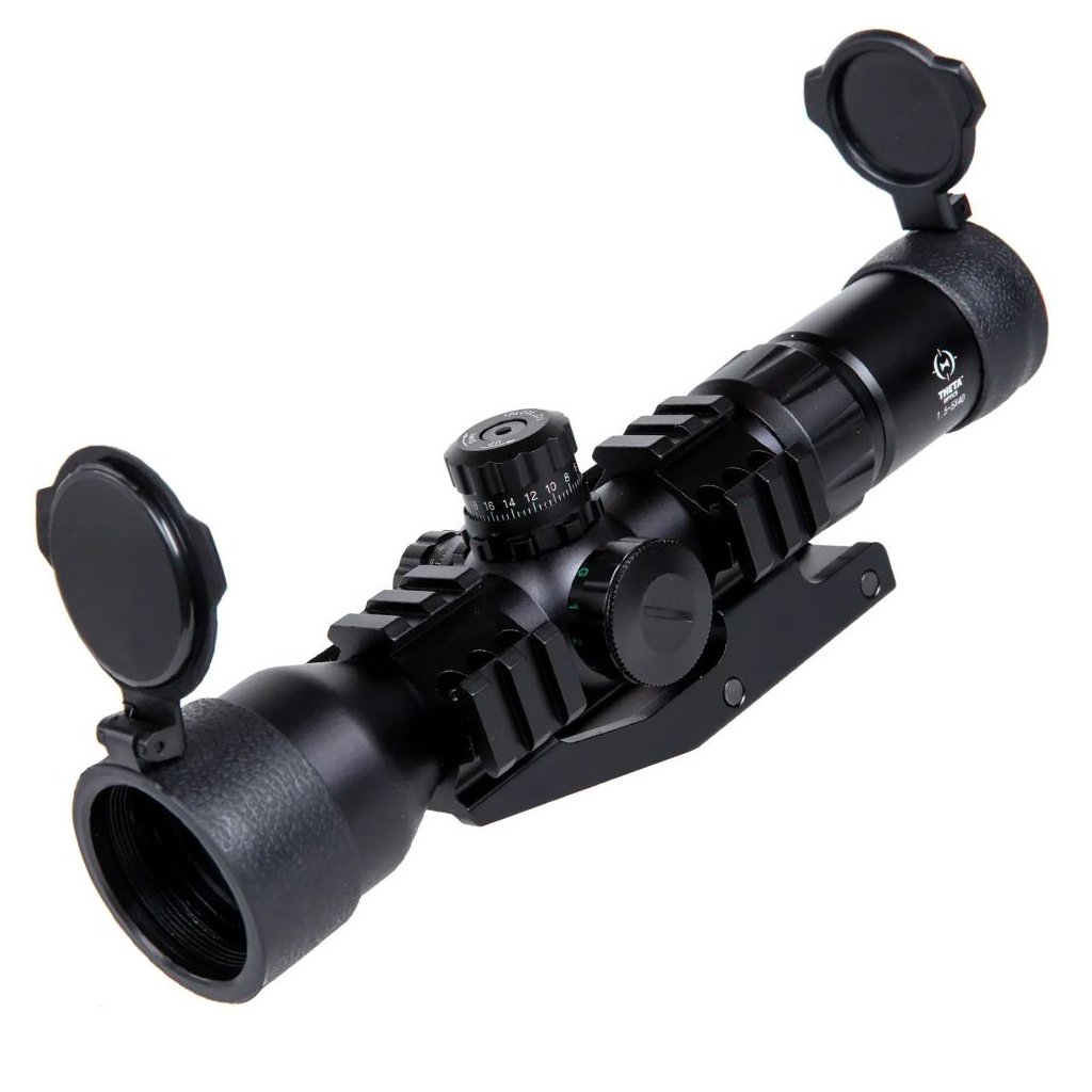 Description: The Theta Optics™ rifle scope is designed for high quality at a reasonable price. It is housed in a robust metal tube and equipped with clear optics with a MIL-Dot reticle. It offers smooth zoom adjustment in the range of 1.5-5x. Thanks to the reticle illumination in three colors (red, blue, green) and three intensity levels, it is suitable for use in both daytime and nighttime conditions. The reticle can be smoothly adjusted both horizontally and vertically. The riflescope is equipped with a RIS mount and six side RIS rails for attaching additional accessories.