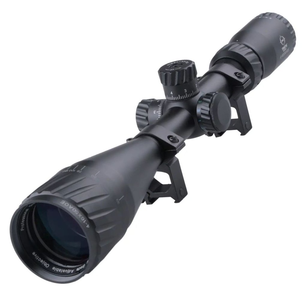 The 4-16x50 AOE scope from Theta Optics is a high-performance optical device designed for airsoft guns, providing excellent magnification and image clarity. With a magnification range of 4x to 16x and a 50 mm objective lens, it allows users to accurately target medium and long-range targets. This magnification range is ideal for a variety of game scenarios, from open spaces to densely wooded areas.
