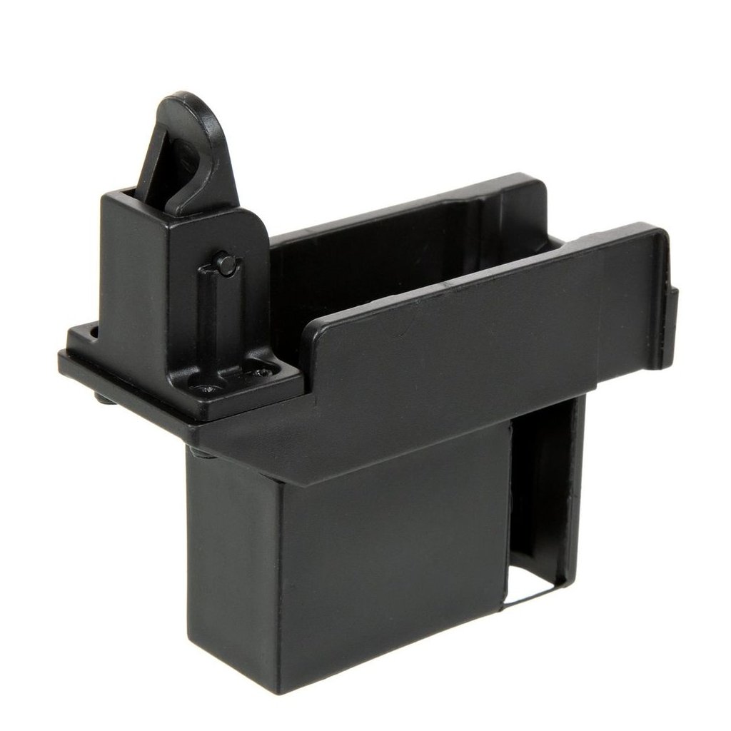 This is an adapter for AK magazines. The adapter works with speed loaders equipped with a manual crank mechanism.