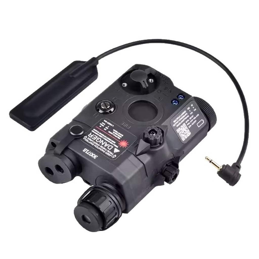 Airsoft laser aiming box with LA-PEQ 15 WADSN Black flashlight The multifunctional LA-PEQ 15-style aiming box combines a red laser and a powerful white LED flashlight and offers several modes of use – steady light, strobe, or combined light and laser mode. The unit is equipped with the ability to adjust the angle and elevation of the laser beam and can be easily mounted on the standard 20mm RIS rail of most airsoft guns. The package includes a remote control that allows for quick activation without having to change your grip on the weapon. The device is black and compatible with most modern tactical equipment.