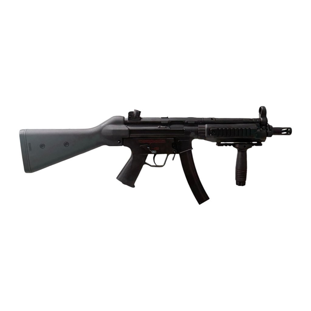 Airsoft gun Cyma MP5A4 RIS CM041B metal features a metal body, metal V2 gearbox and a precise 6.04 mm brass inner barrel delivering stable performance around 380 FPS. The package includes a magazine, tactical grip, battery and charger.