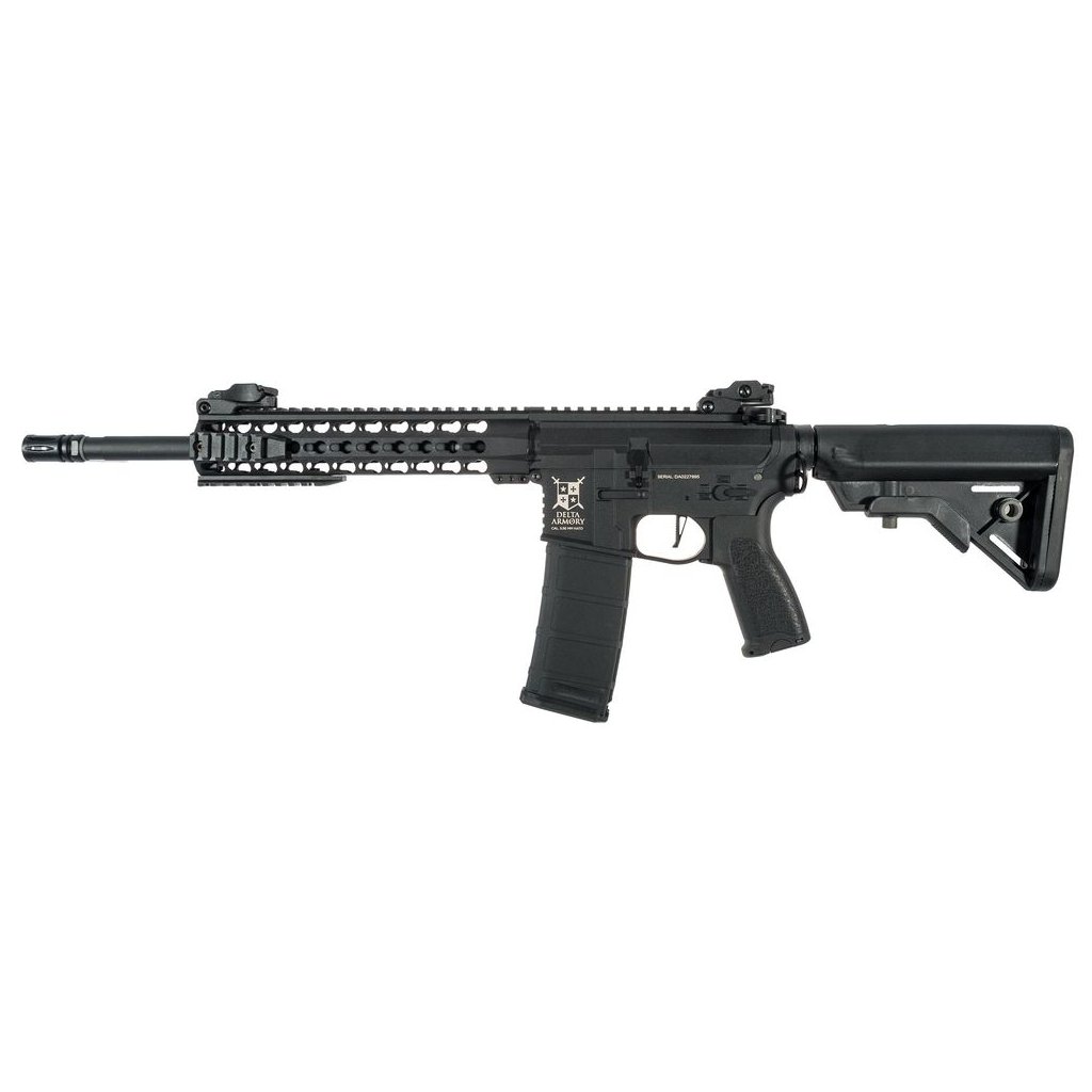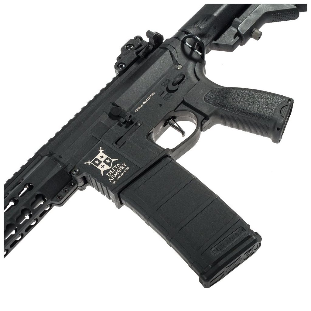 Delta Armory brings a new generation of AR15 rifles. The AR15 Keymod Charlie 10" ETU is a high-quality airsoft replica made of durable Nylon polymer with carbon fiber, which makes the weapon light but durable. Thanks to the upper 22mm RIS rails, a wide range of accessories such as collimators and rifle scopes can be added to the handguard. The sides of the handguard are adapted for Keymod mounting.