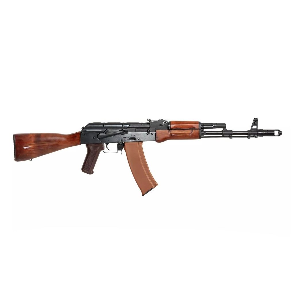 An excellent and authentic replica of the Soviet AK74 rifle from E&L. What guarantees an authentic feel is the fact that E&L airsoft replicas are assembled in a factory where real firearms are manufactured, which means that some external elements are identical to their original counterparts and come from the same production line. The replica is made entirely of steel, with a realistic appearance and construction, and a metal gearbox. The stock and handguard are made of painted wood.
