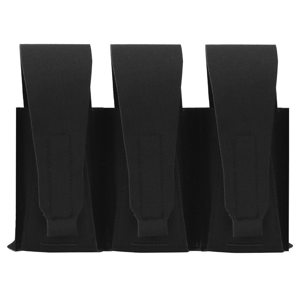 Front panel for 3 magazines for use on tactical vests and plate carriers, Black is a modular hook-and-loop panel for quick access and easy swapping.