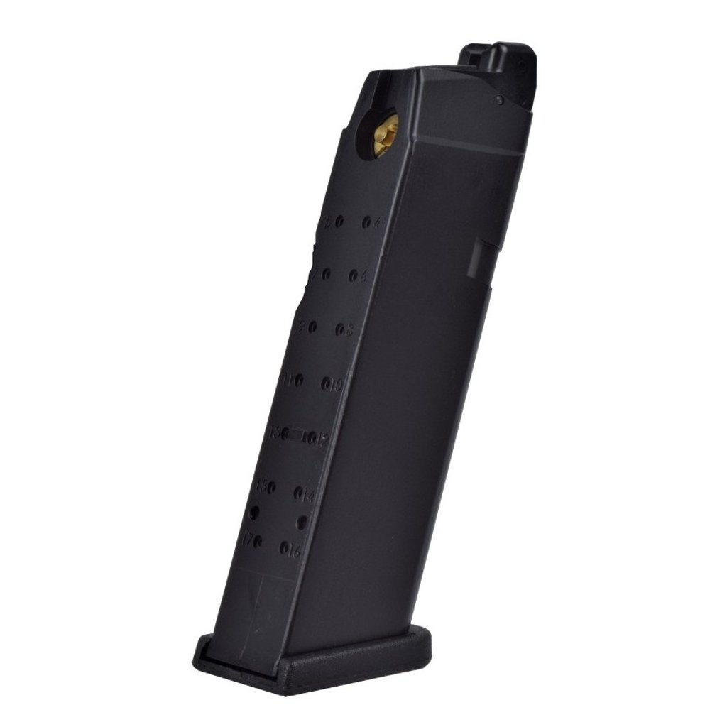 Gas magazine for WE brand weapons in all-metal design. The magazine is compatible with Glock weapons: 17, 18, 19, 23, 34, and 35.