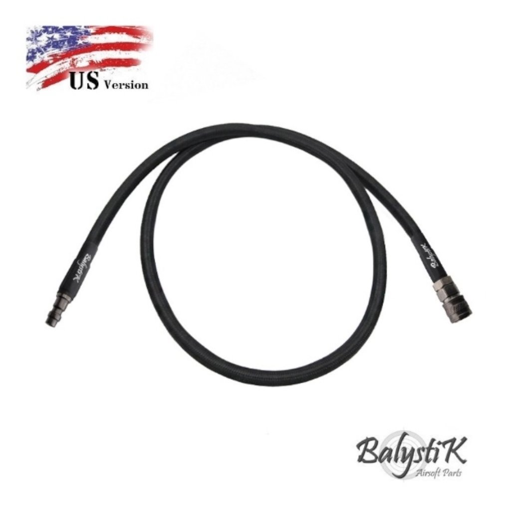 A flexible and highly durable premium HPA line with double nylon braiding, designed for demanding airsoft use with US-type connectors.
