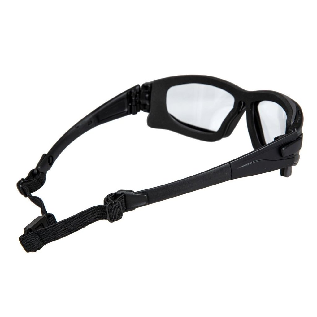 The glasses are equipped with easily replaceable temples or an elastic strap, allowing for quick adaptation to different conditions and user preferences. Weighing only 47g for the glasses and 48g for the lenses, they are extremely lightweight, contributing to their comfortable wear even during long periods of activity. They offer 99% protection against harmful UVA/B/C radiation and meet ANSI Z87.1 and MIL-PRF 32432 ballistic standards, as well as European standard EN 166 with the highest level of protection against flying objects - level A.