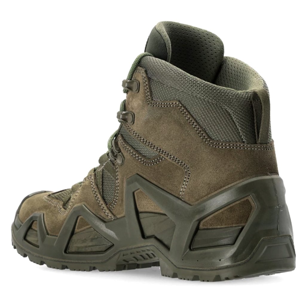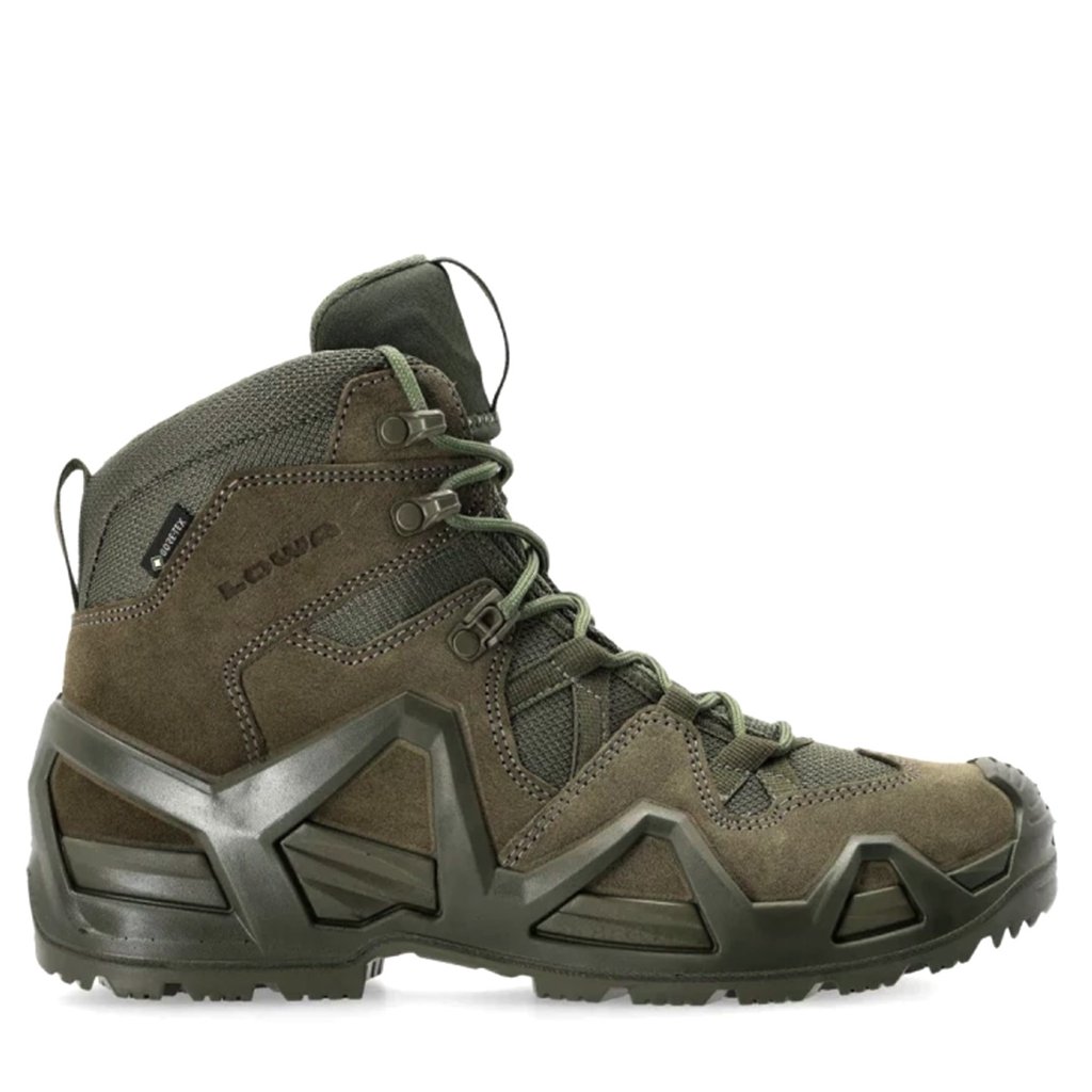 LOWA Zephyr MK2 GTX Mid TF Ranger Green boots offer durability, waterproof protection and comfort thanks to their water-repellent suede upper, GORE-TEX membrane and stable Monowrap® construction. Perfect for professional use and demanding outdoor conditions.