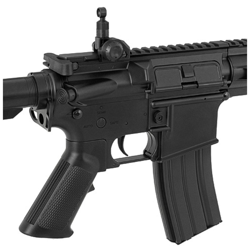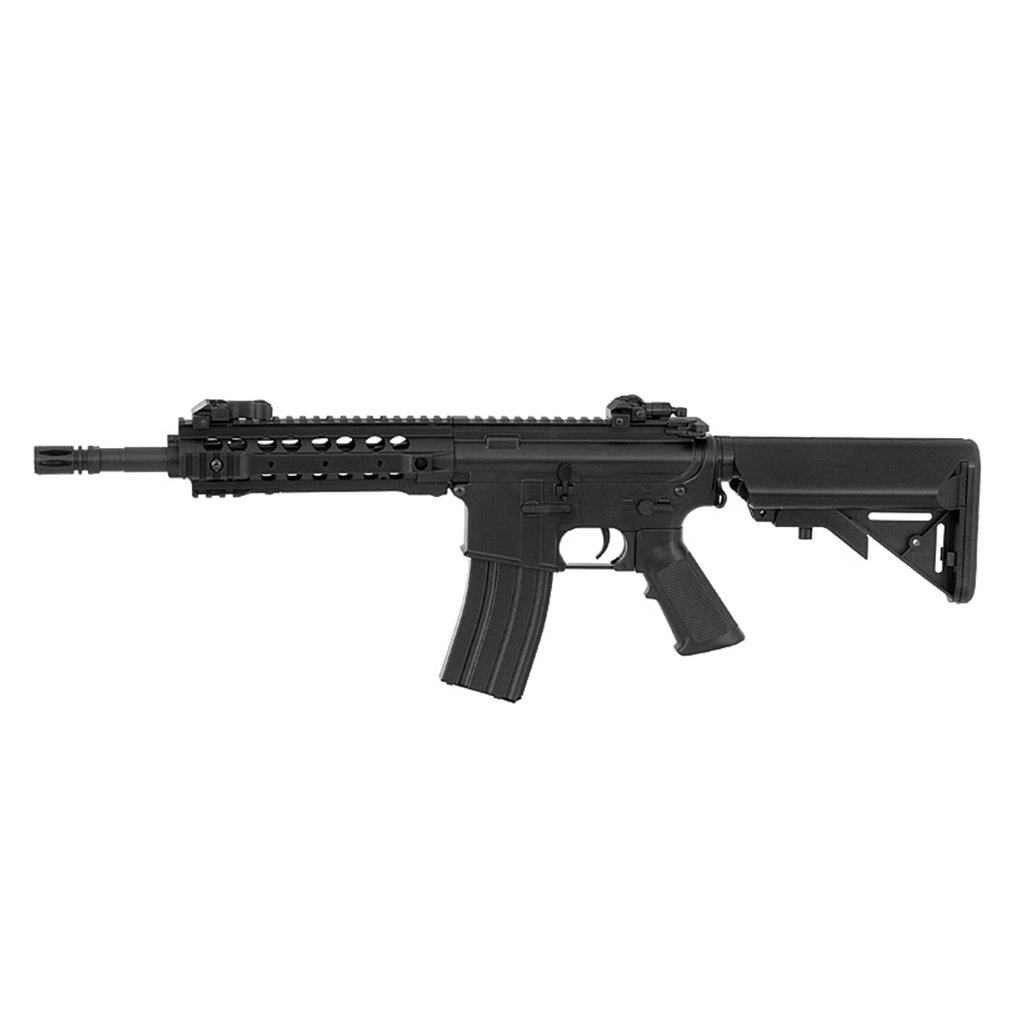 M4A1 URX III Sportline CM.516 Cyma airsoft rifle, black belongs to the Cyma Sport Edition entry-level series, focused on affordability, simplicity, and reliable performance. This M4 URX3 CQB replica features an ABS polymer receiver combined with a metal outer barrel. The latest edition includes an updated body with a functional mock bolt catch, charging handle, and a realistic bolt imitation. The rifle is equipped with a KAC URX III-style polymer RIS handguard, a six-position Crane stock, and folding KAC iron sights, allowing easy installation of optics or red dot sights.