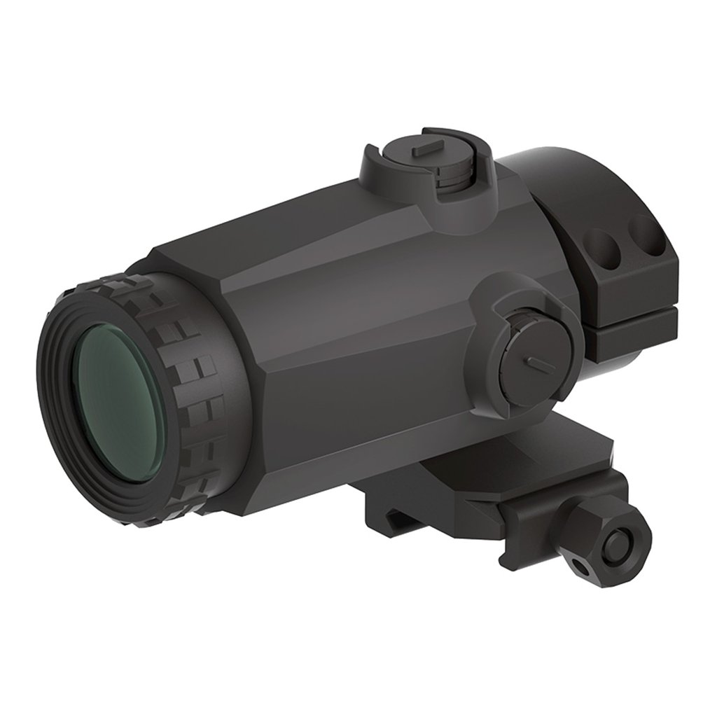 Magnifier MAVERICK-III 3x22 – compact red dot magnifier with rubberized body, 3× magnification and 69 mm eye relief for comfortable shooting.