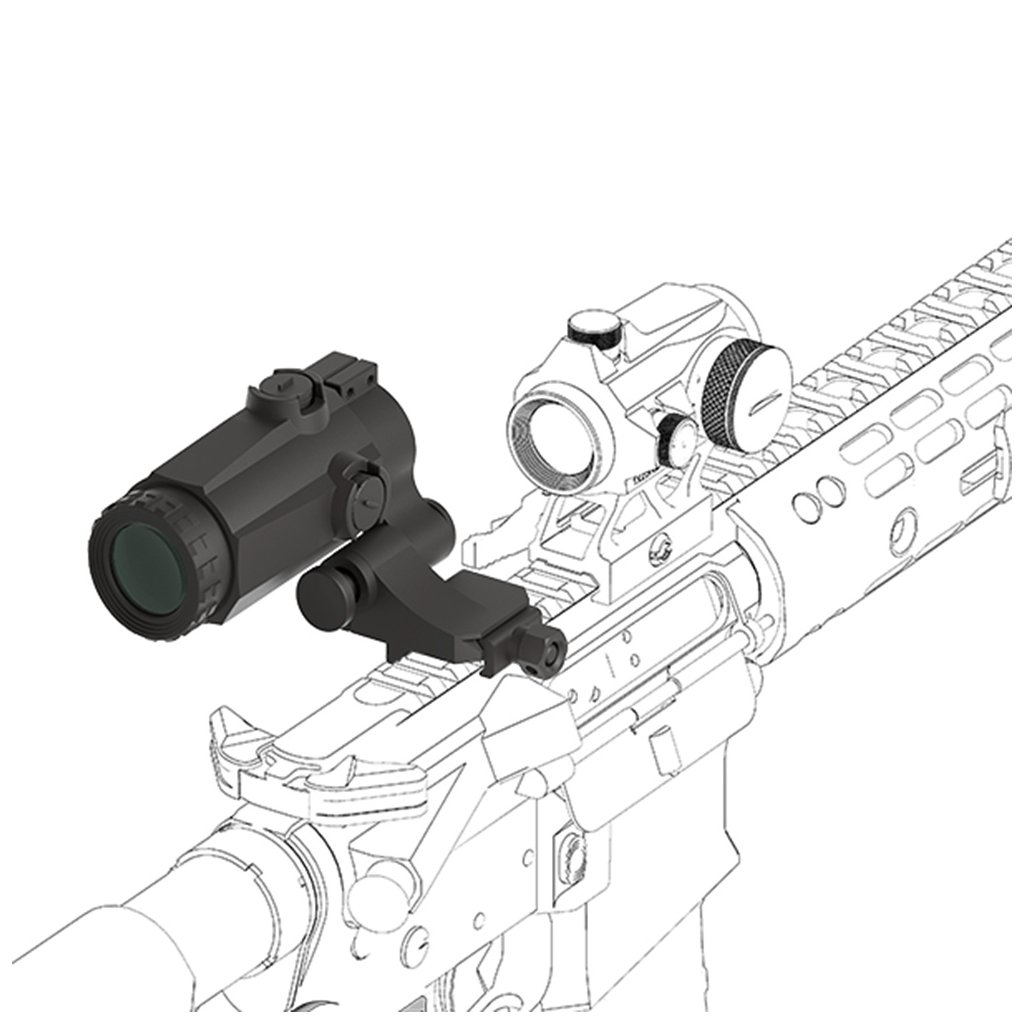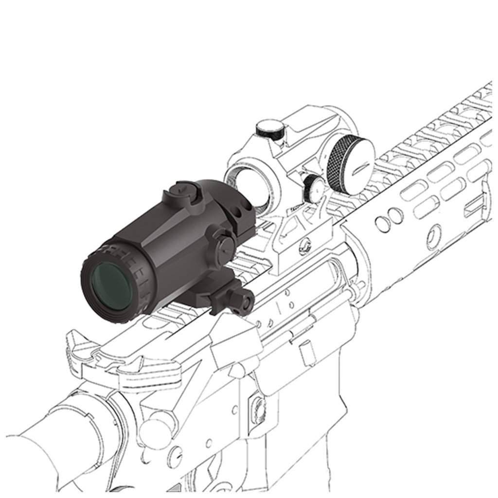 Magnifier MAVERICK-III 3x22 is a reliable optical attachment designed to be paired with red dot sights. It delivers a bright, sharp image with a durable rubberized body and both windage and elevation adjustment for fine-tuning accuracy. Featuring 69 mm (2.7 in) of eye relief, it ensures comfortable shooting over extended use. The magnifier comes with a flip-to-side Picatinny mount (SCTM-17), offering quick deployment when needed. With a mount height of 36 mm (1.4 in) from base to ring center, it aligns perfectly with a wide range of optics. Compatible with numerous red dot models, it’s an excellent choice for shooters seeking versatility and enhanced performance.