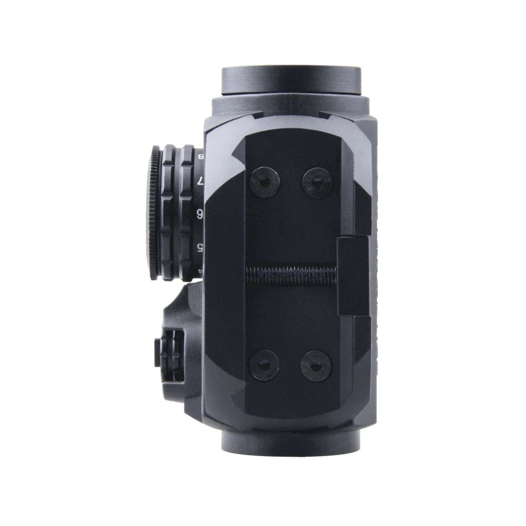 Maverick Gen III 1x22 S-MIL Red Dot Sight – black, Vector Optics is a compact and robust optic designed for mounting on a RIS rail, providing fast and precise target acquisition in dynamic situations. Thanks to 11 brightness levels, the red dot remains clearly visible in daylight as well as in low-light environments. The rubberized body increases resistance to impacts and scratches while improving handling comfort. The sight includes a honeycomb killflash that eliminates glare and protects the lens from BB hits during airsoft games. The side battery compartment allows quick battery replacement without the need to re-zero the sight. The construction meets IPX4 water resistance standards and the manufacturer states resistance even for .308 caliber use, confirming the high mechanical strength of the optic.