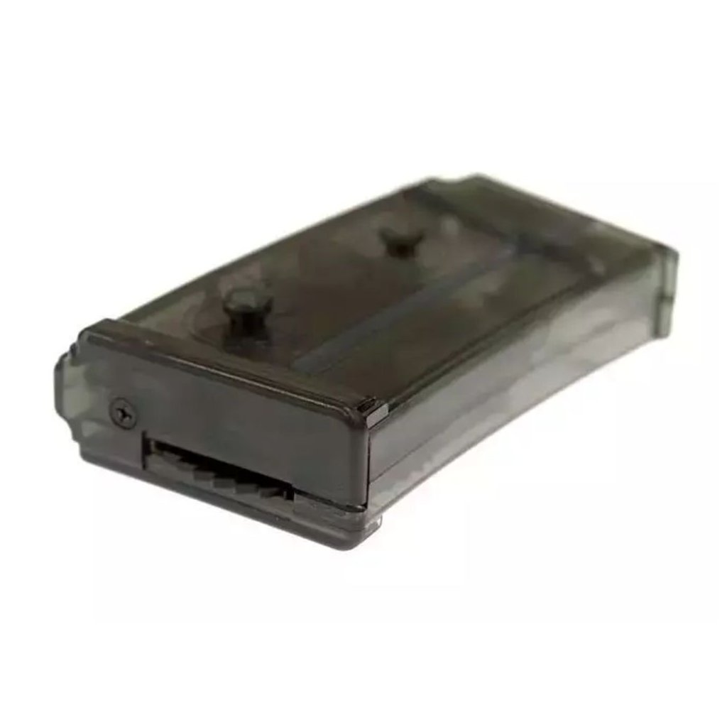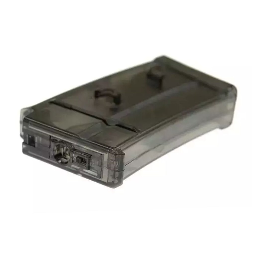 Transparent plastic magazine from Jing Gong for SIG 552 rifles. It is a rotating magazine with a capacity of 220 BBs (balls).