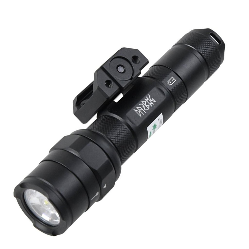 Tactical flashlight with RIS mount DAŽBOG RT01 - LED + green laser combines a 650-lumen LED light with an integrated 532 nm green laser. Its CNC-machined aluminum body, 18650 Li-ion power source, and multiple lighting modes make it a reliable accessory for airsoft rifles.