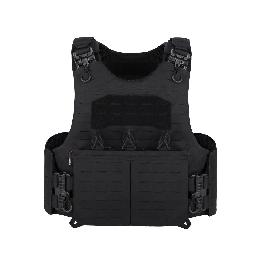 The Yakeda VT-8545 tactical vest in black is a minimalistic plate-carrying solution designed for fast deployment, easy access and lightweight loadout management. Its one-shoulder configuration allows the user to quickly equip or remove the vest using the integrated quick-release system.