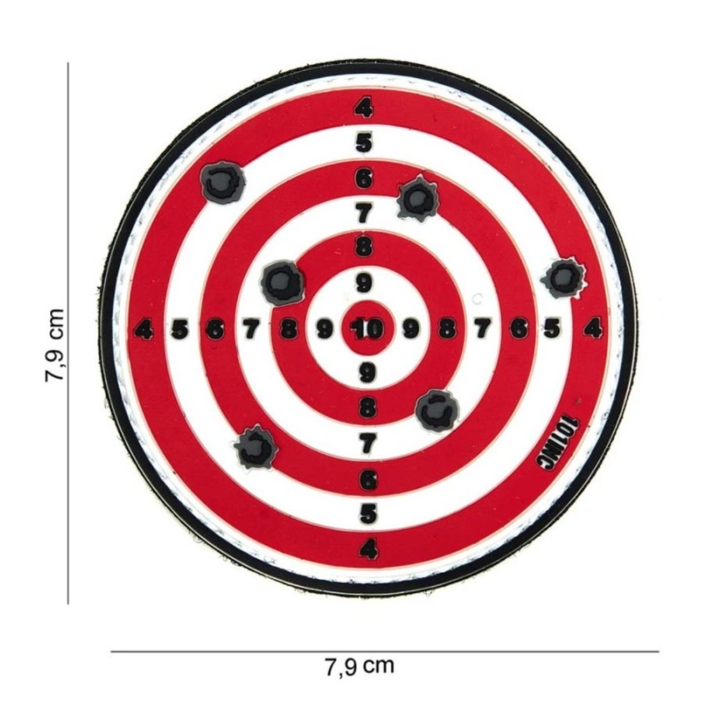 The product called "Target Velcro Patch (3D plastic) - red (101 INC)" is a product of 101 Inc. This product is made of PVC material and has a diameter of 80 mm.