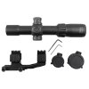 The optics allow for fine aiming adjustments with a range of 60 MOA and a step of 1 MOA per click. Diopter compensation (+2 to -2) allows for quick focusing. The package includes a 30mm one-piece mount, flip-up caps, and a cleaning cloth.
