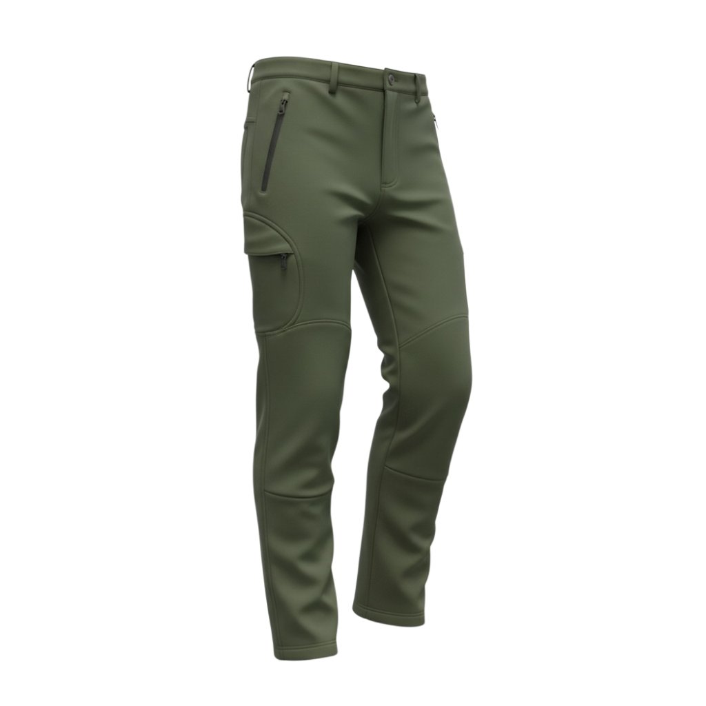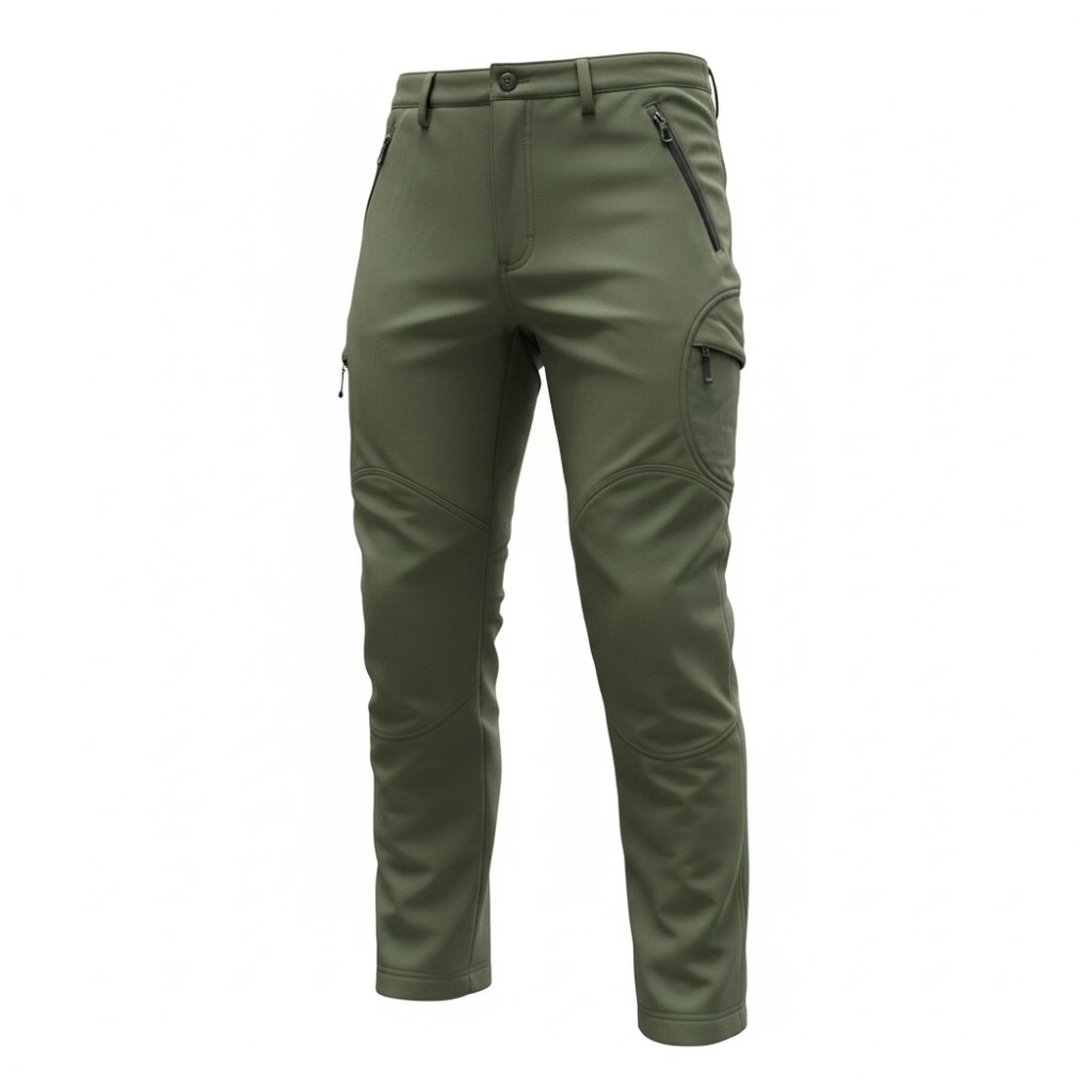 Insulated softshell pants designed for cold weather, combining a durable outer material with a warm fleece inner lining and practical pocket layout.