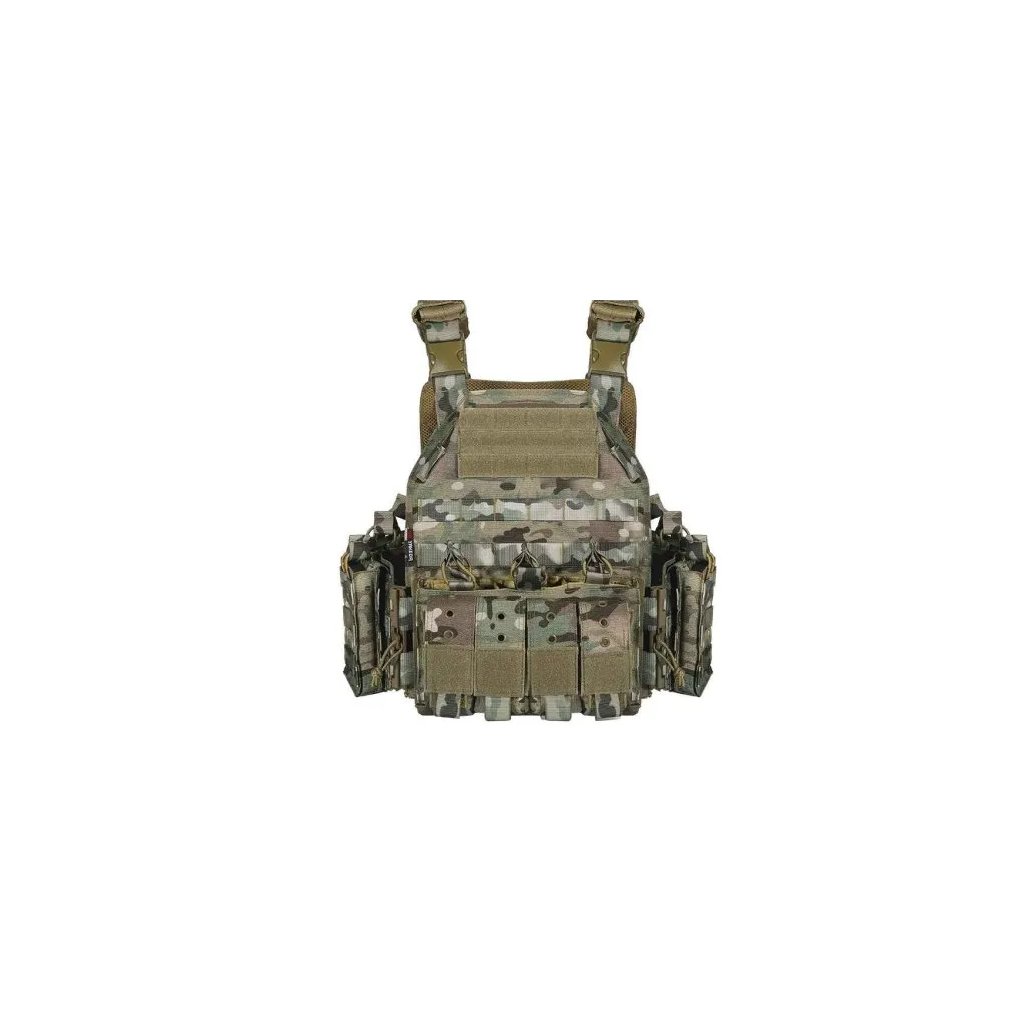The YAKEDA VT-8300-2 multicamo plate carrier is built from rugged 1000D nylon, offering excellent resistance to wear and demanding field conditions. Designed for comfort and adaptability, it features an interchangeable front panel that allows you to reconfigure your setup based on mission requirements.