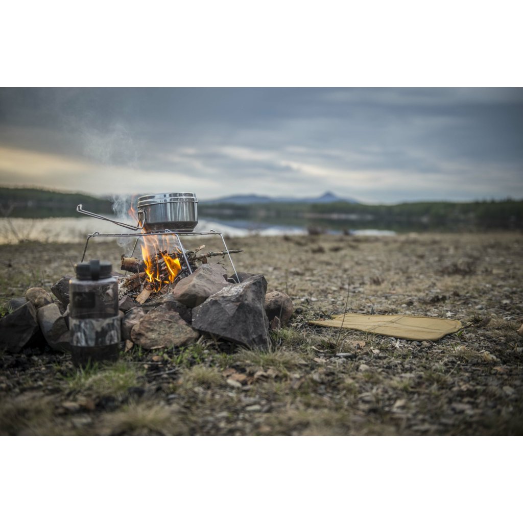 Sada se skládá ze dvou nádob a víčka, které zároveň slouží jako pánev. Díky sklopným držadlům se celý set snadno přenáší a zabalí do kompaktní podoby. Ideální pro turistiku, kempování, bushcraft i vojenské využití.
