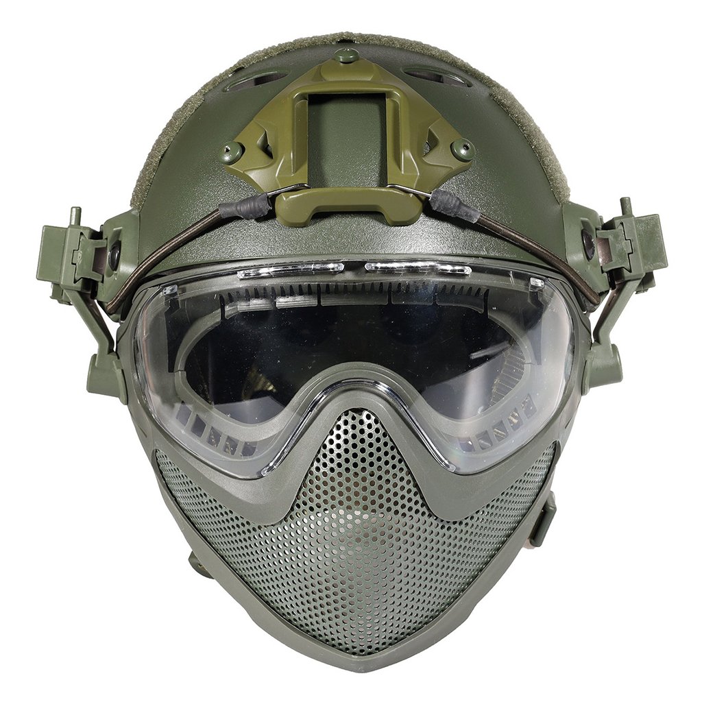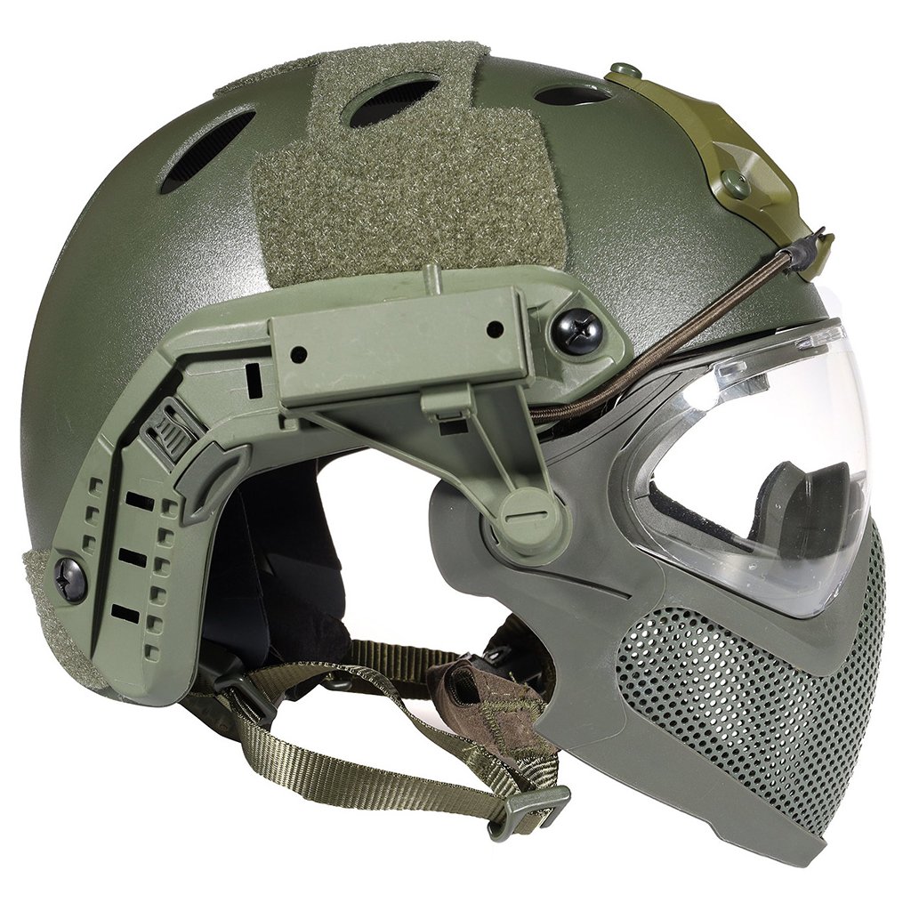 Helma a maska B-Typ Piloteer Oliva – Guerilla Tactical – stylová sada přilby FAST Gen2 a masky B-Type s odnímatelným a nastavitelným systémem uchycení, ideální jako estetický doplněk pro airsoft či cosplay.