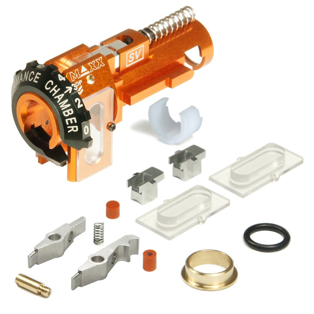 Popis: CNC hliníková Hop-Up komora SV je precizně zpracovaný komponent určený pro AEG zbraně typu VFC SCAR-L a SCAR-H. Tato komora minimalizuje úniky vzduchu, čímž zvyšuje výkon zbraně. Je vybavena přesným otočným kolečkem pro jemné nastavení přítlaku. V horní části se nachází výměnná páka přítlaku, optimalizovaná pro R-hop a standardní Hop-Up systémy. Komora je kompatibilní s délkou trysek 21,00 mm až 21,25 mm pro SCAR-L a 38,50 mm až 38,75 mm pro SCAR-H. Podporuje většinu hop-up gumiček bez ztráty FPS a bez klesání BB. Díky přepracovanému CNC Delrin Locking C-Clipu je zajištěno pevné a stabilní uložení hlavně bez rotace.