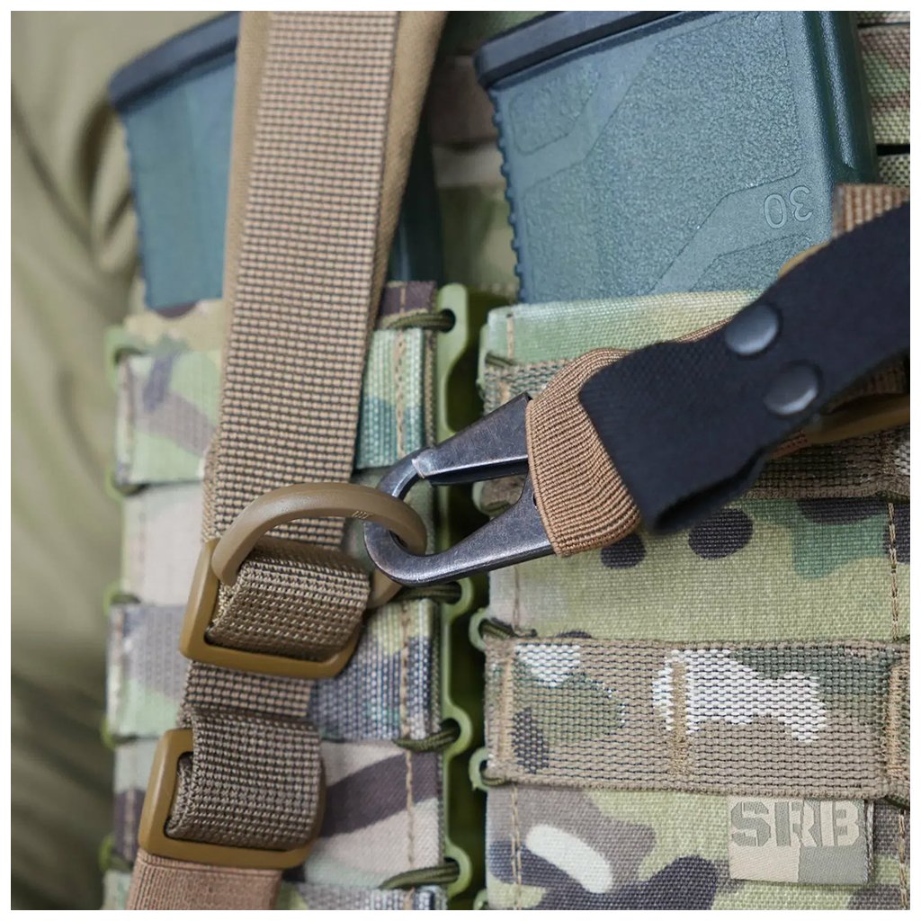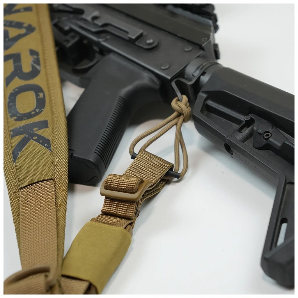 Jedno/dvou bodový popruh Ragnarr Gen. II Ragnarok (Coyote) je aktualizovaná verze taktického popruhu navržená na základě reálných bojových zkušeností a terénních testů. Nabízí vysokou taktickou flexibilitu — primární dvoubodové uchycení s možností rychlého přepnutí do jednobodového režimu pro maximální manévrovatelnost. Robustní široká polstrovaná ramenní část rovnoměrně rozkládá zátěž a zvyšuje komfort při dlouhodobém nošení. Díky systému rychlé regulace lze délku popruhu upravit jednou rukou v reálném čase. Konstrukce z materiálů Cordura a polyamidové pásky v kombinaci s technologií Tank Track® a kovovými nýty ve vysoce namáhaných bodech poskytuje výrazně vyšší odolnost než běžné švy. Acetalové a kovové prvky sází na trvanlivost a odolnost vůči korozi a nárazům. Součástí je i mechanizmus rychlého vypnutí pro nouzové uvolnění zbraně.
