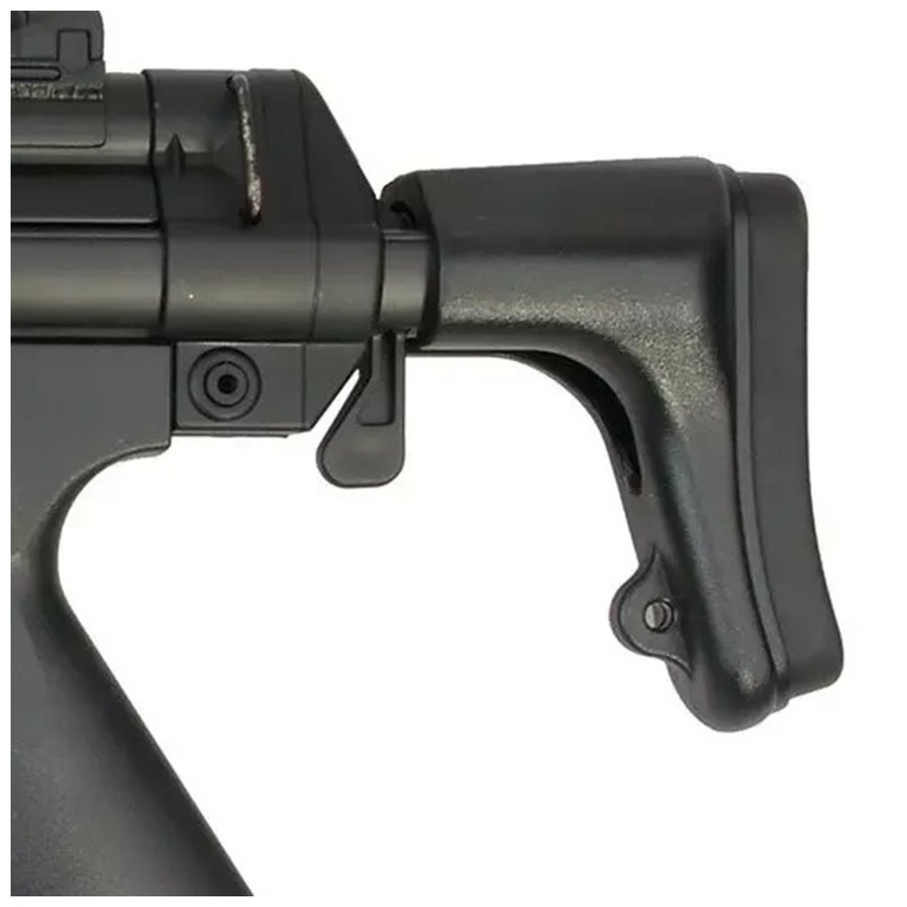 Nastavitelná délka pažby umožňuje přizpůsobení různým postavám i herním stylům. Díky kompaktním rozměrům je replika ideální pro boj v městském prostředí nebo uzavřených prostorách. Baterie je prakticky umístěna uvnitř atrapy tlumiče, což zachovává realistický vzhled zbraně.