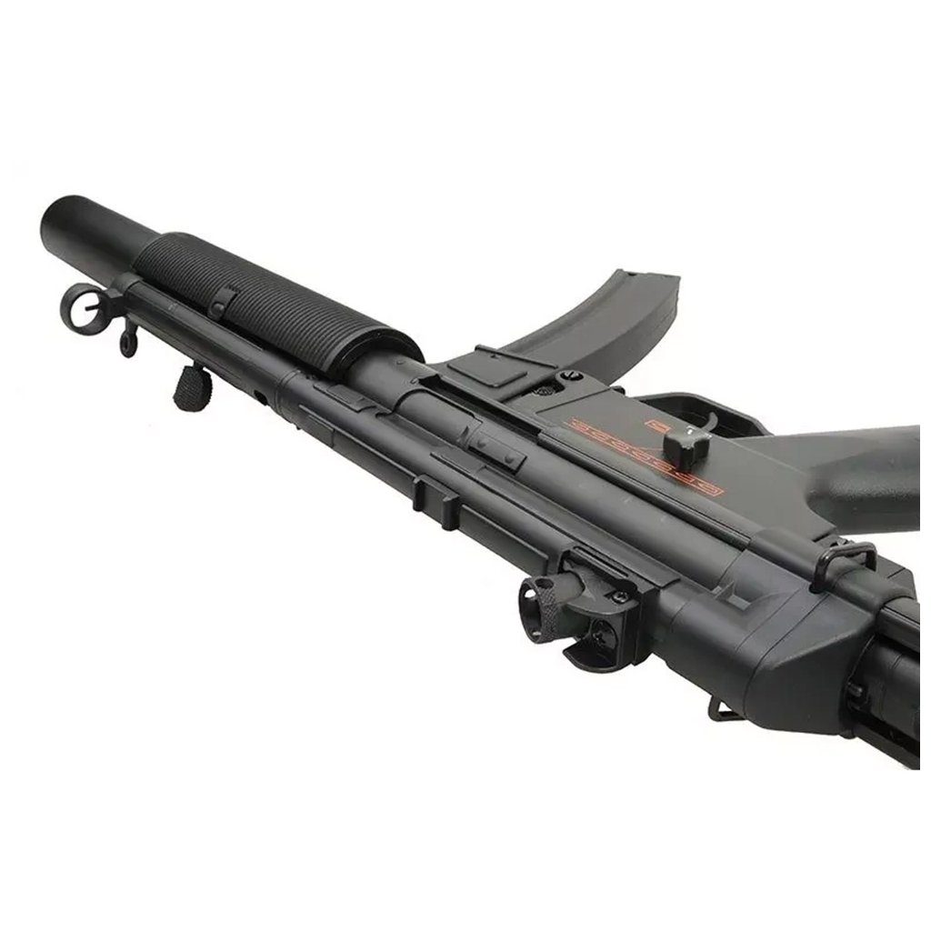JG MP5 SD6 (JG067MG) Plast/kov černá - Jing Gong je vyrobena z kombinace odolného plastu a kovových prvků. Kovové části zahrnují lištu, spoušť, volič režimu střelby a zámek, zatímco tělo je z pevného polymeru. Ocelové jsou také háčky pro uchycení nosného popruhu, což zajišťuje pevnost a dlouhou životnost.