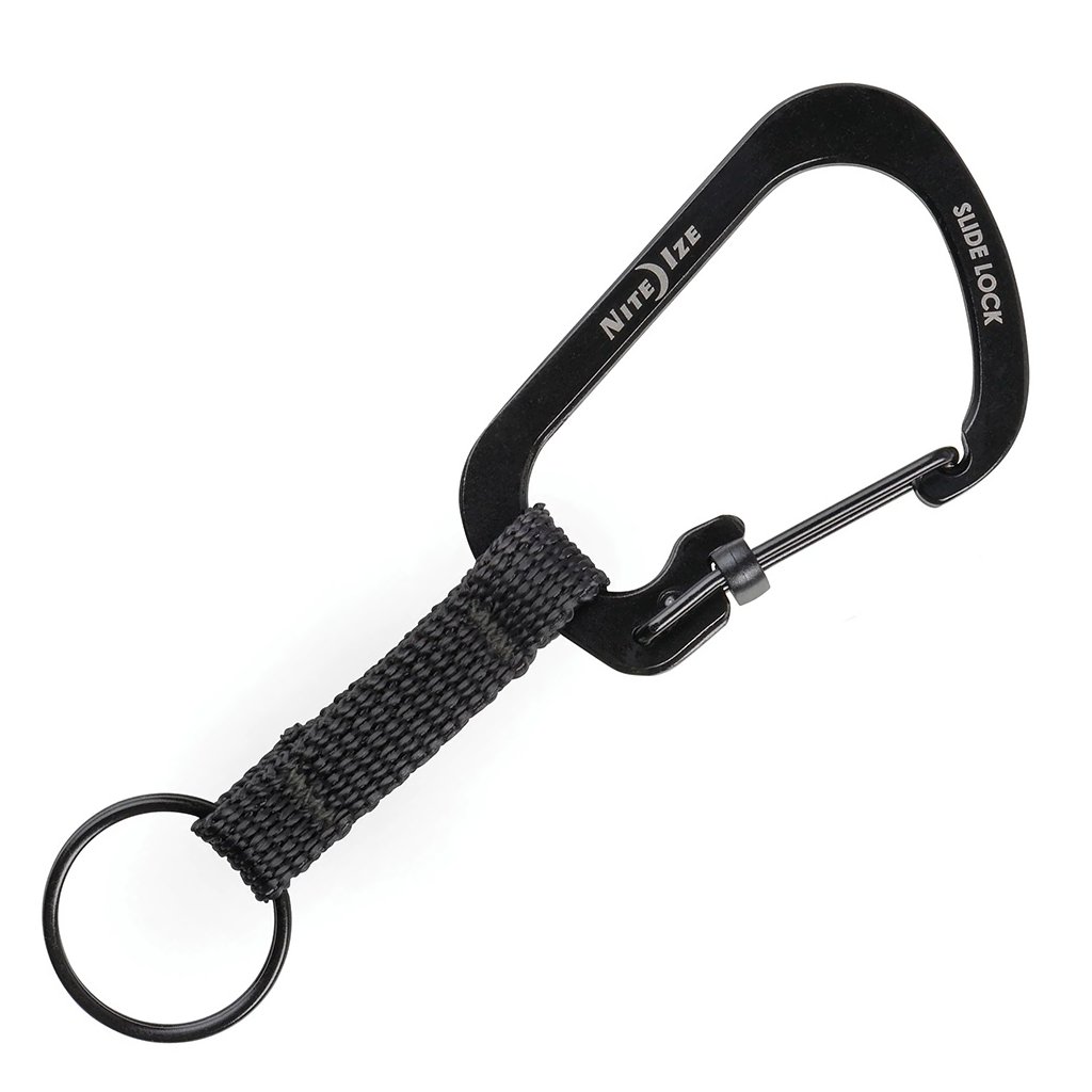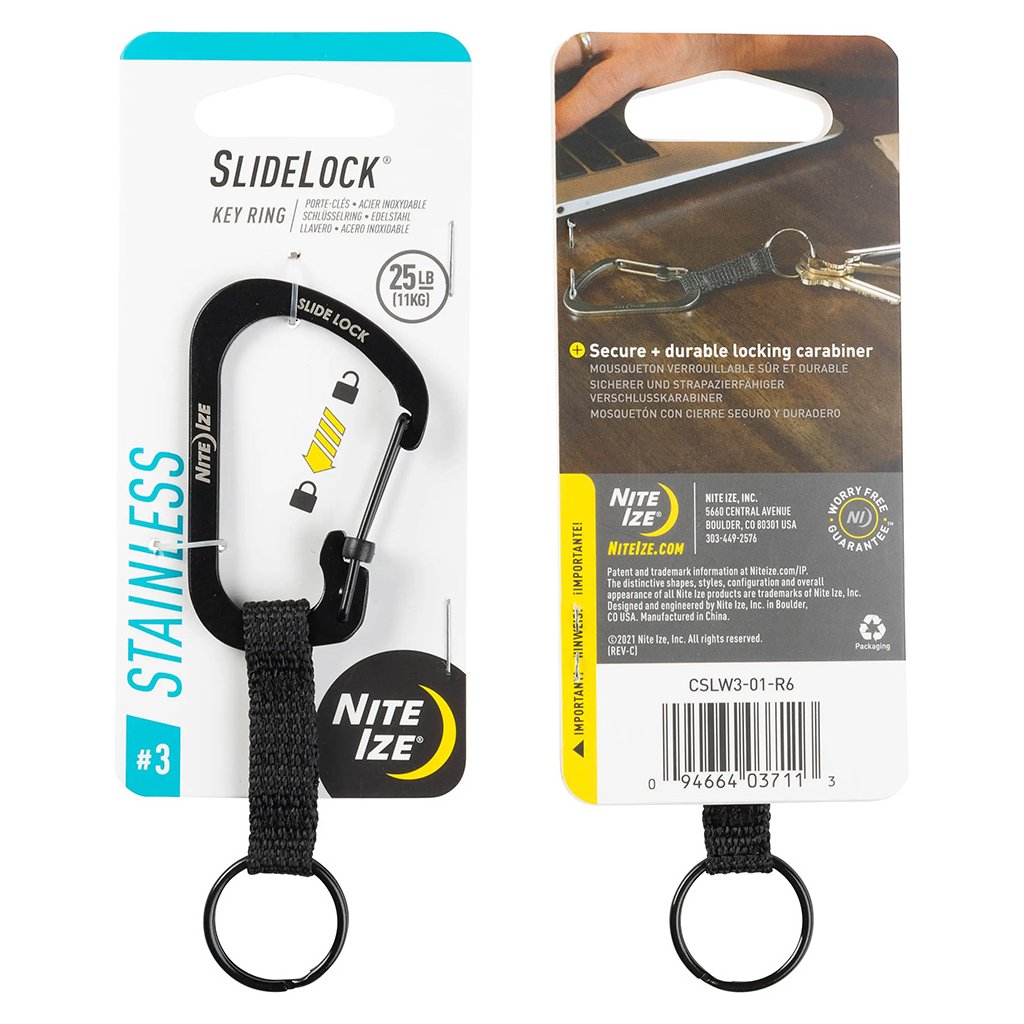 Kličenka SlideLock Key Ring #3 (černá) (CSLW3-01-R6) - Nite Ize – Uzamykatelná karabina s kroužkem na klíče, spojená nylonovým popruhem pro bezpečné a praktické nošení.
