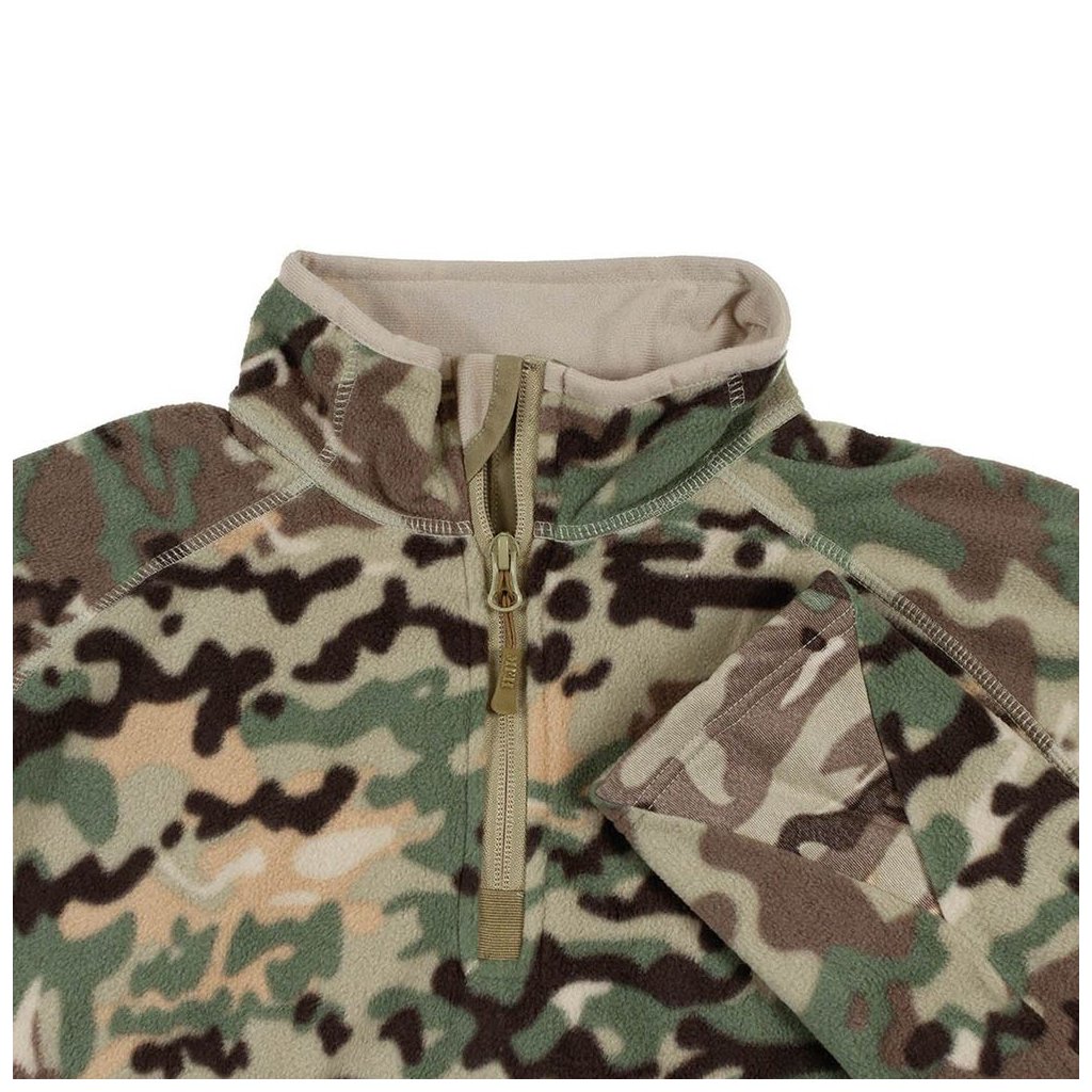 Lehká a hřejivá fleecová mikina s dlouhým rukávem v maskovacím vzoru Operation Camo. Střední izolační vrstva s rolákem a zipem, konce rukávů s otvory na palce.