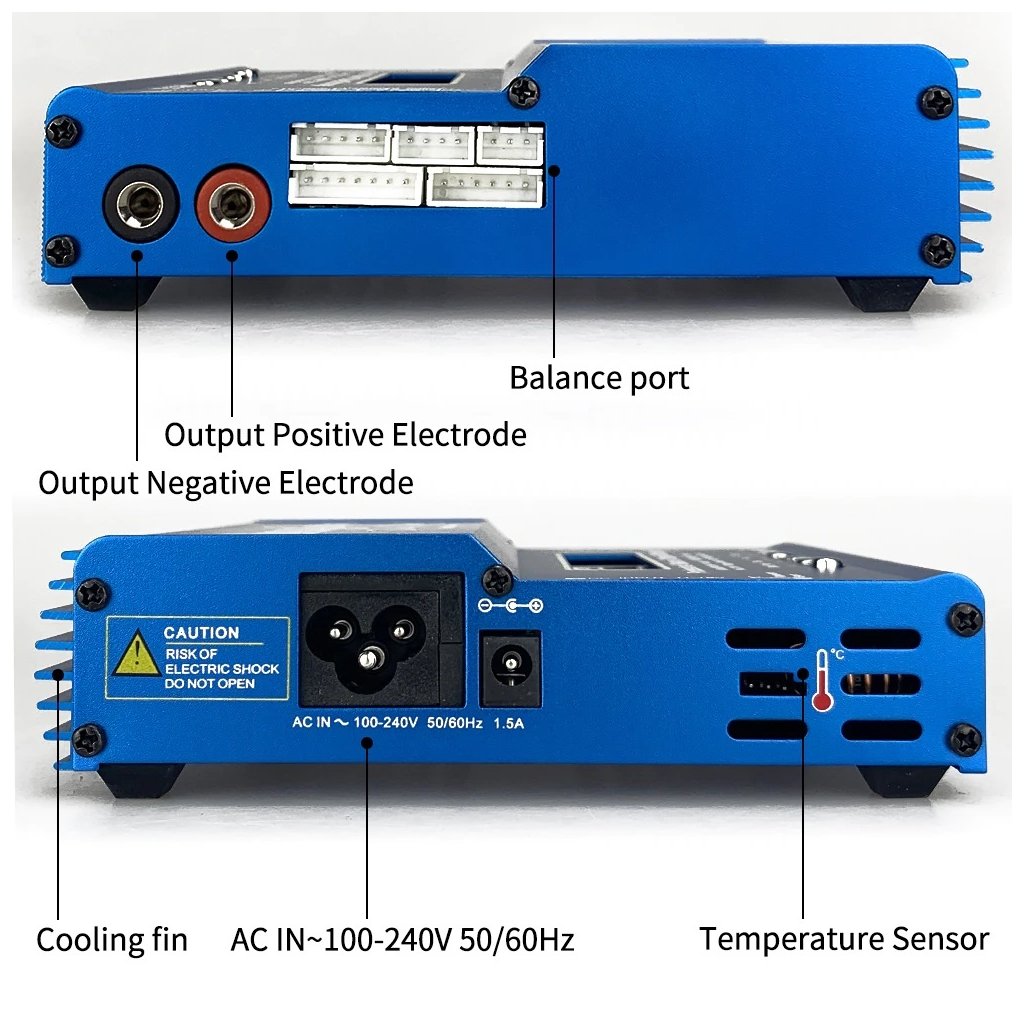 Technické vlastnosti zahrnují mikroprocesorové řízení a svítící LCD displej pro snadnou obsluhu. Nabíječka podporuje funkce jako Delta-Peak nabíjení, nabíjení LiPo a LiFe A123, a nabíjení Ni-Cd a Ni-MH. Umožňuje široký rozsah změny nabíjecích proudů, funkci uložení pro parkování Li-Pol baterií, časový omezovač a monitorování napájení. Vestavěná paměť umožňuje uložení až pěti nabíjecích paketů a zařízení podporuje formování baterií a připojení snímače teploty.