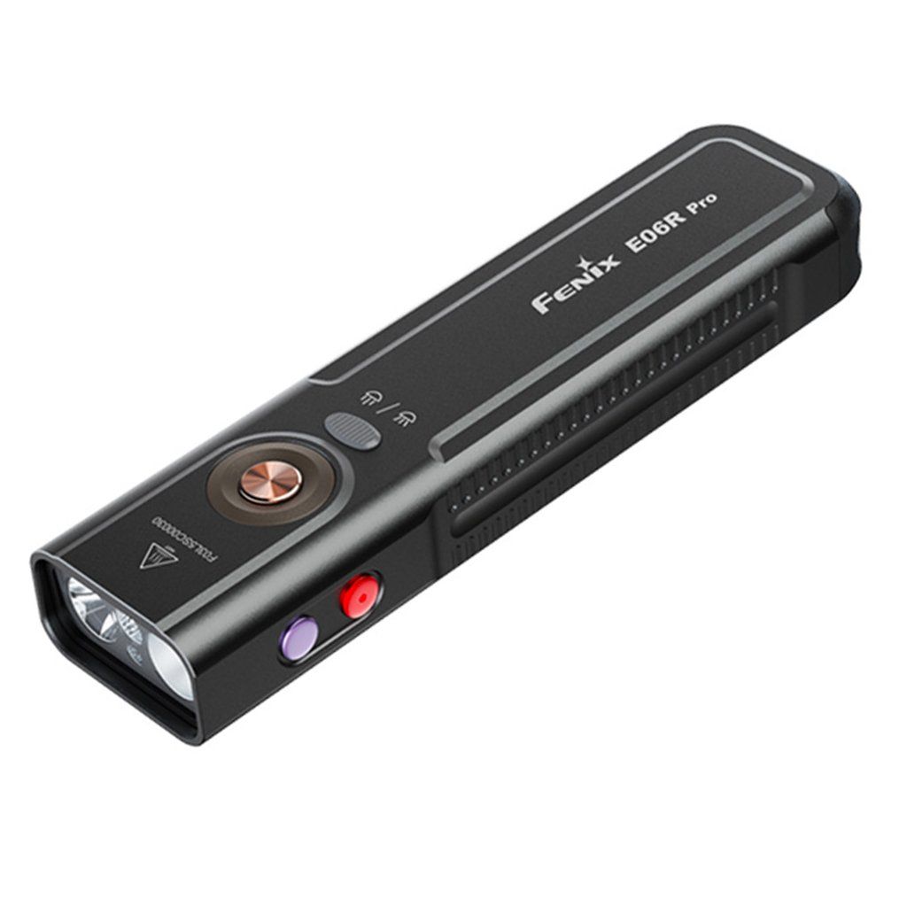 Nabíjecí svítilna s UV světlem a Laserem E06R - PRO - černá - Fenix kombinuje výkonné bílé světlo až 1600 lumenů, UV světlo 365 nm a červený laser v kompaktním těle určeném pro každodenní nošení.