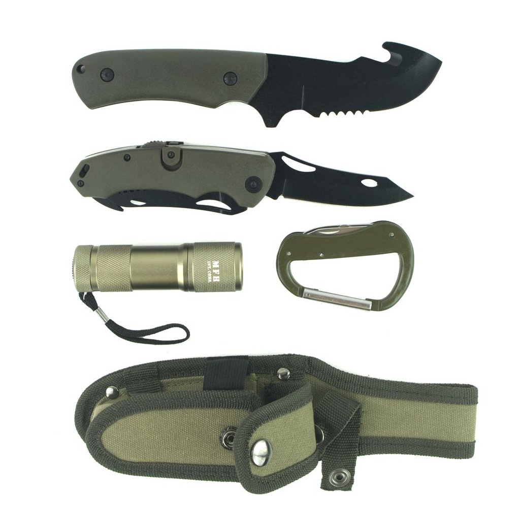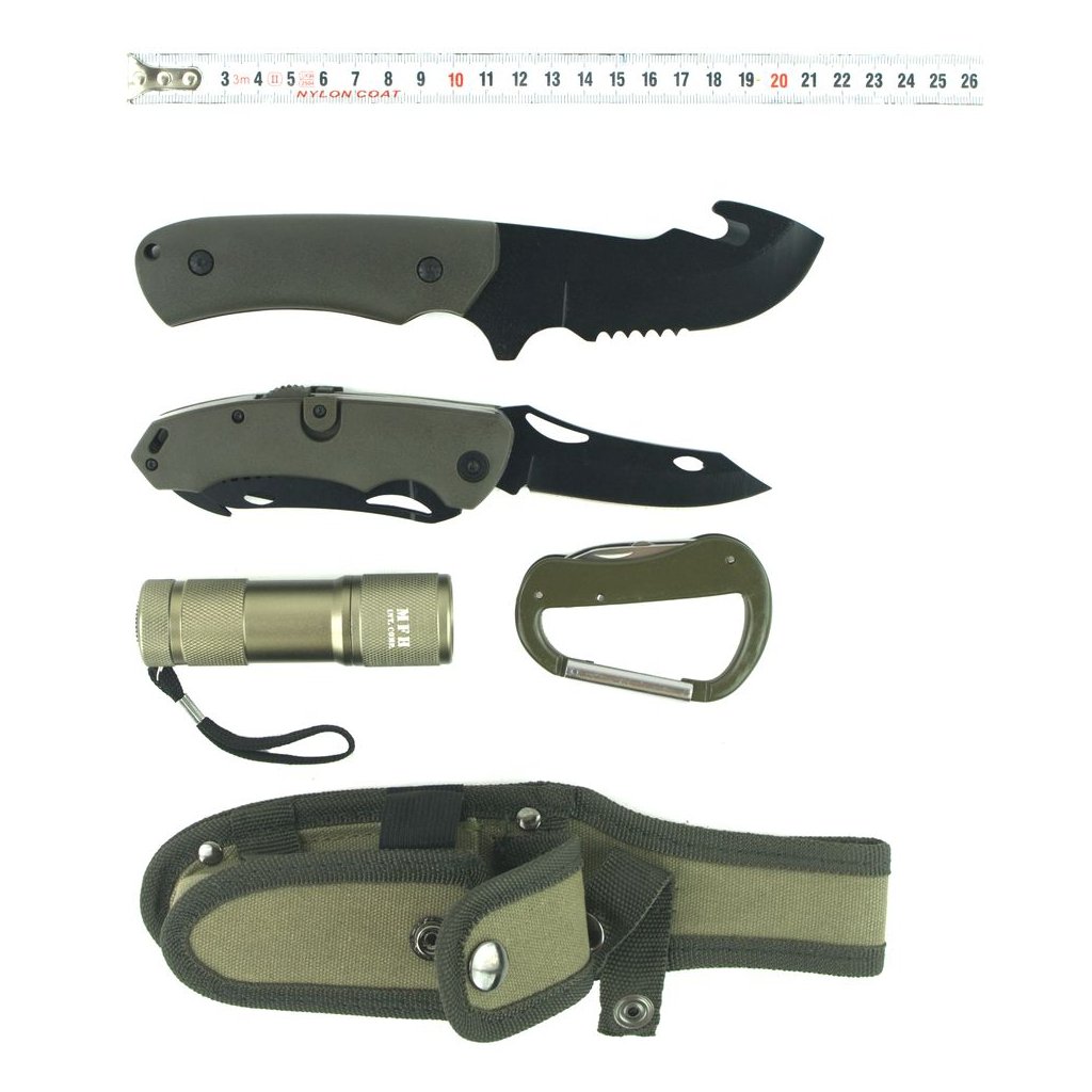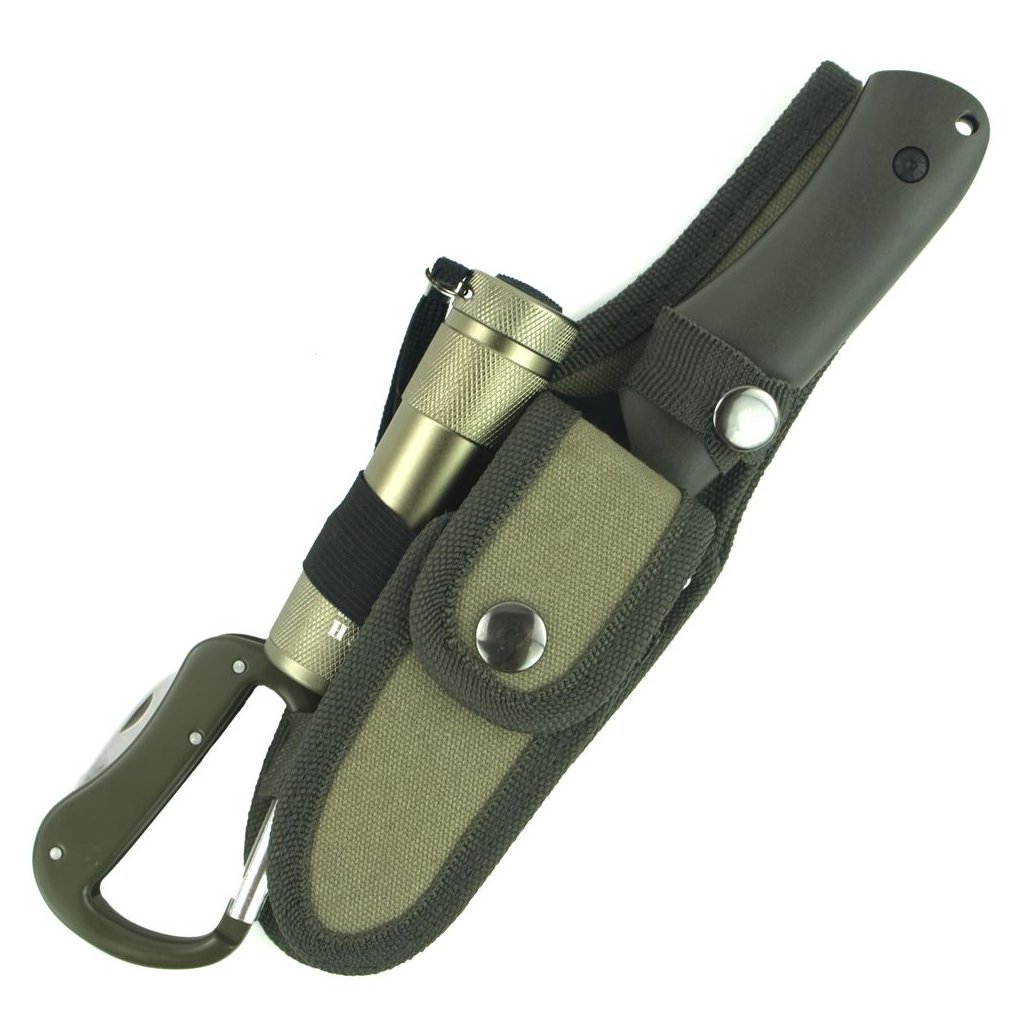 Nůž s pouzdrem a svítilnou, Délka: 21,5 cm, Čepel 10 cm - (oliva)