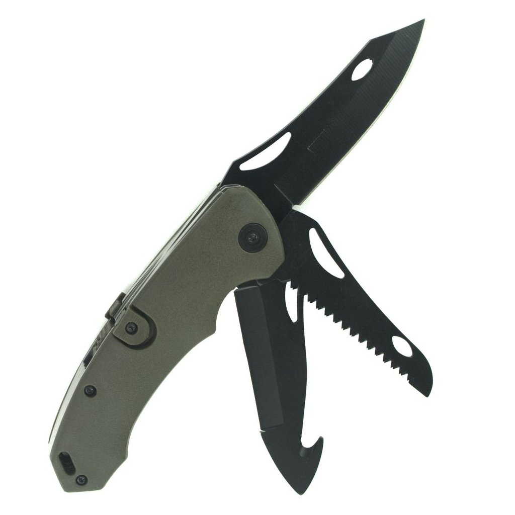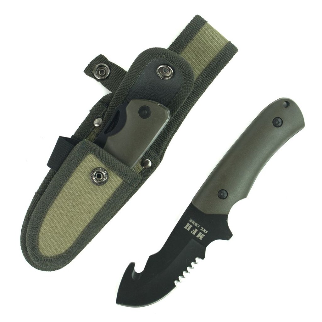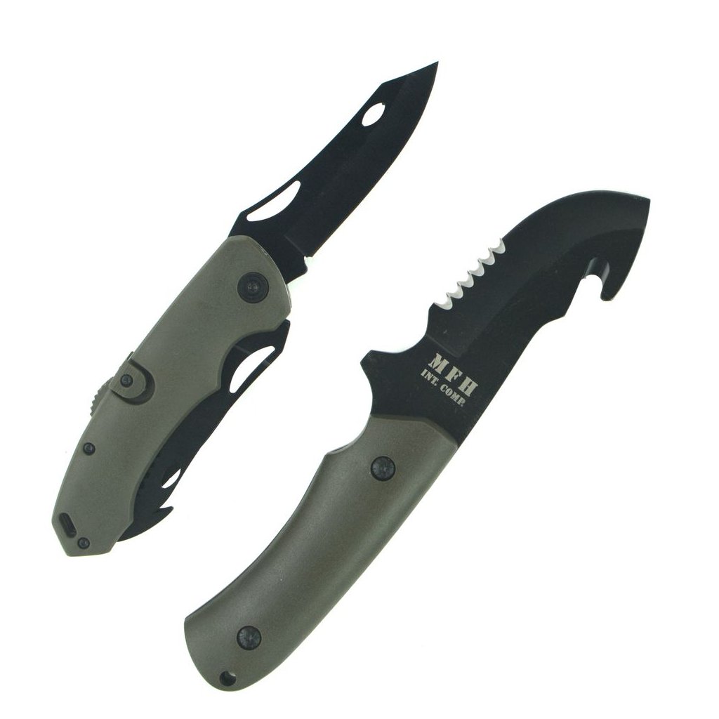 Nůž s pouzdrem a svítilnou, Délka: 21,5 cm, Čepel 10 cm - (oliva)