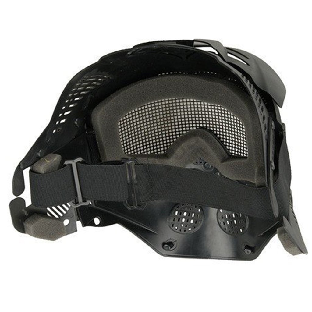 Bezpečnostní upozornění: Maska neslouží jako balistická ochrana při airsoftu — pod maskou je nutné nosit balistické (certifikované) brýle. Maska může posloužit jako dodatečná ochrana dioptrických brýlí, avšak pokud na ni dopadne zásah z výkonnější repliky, existuje riziko roztržení či roztříštění kuličky a následného poranění.