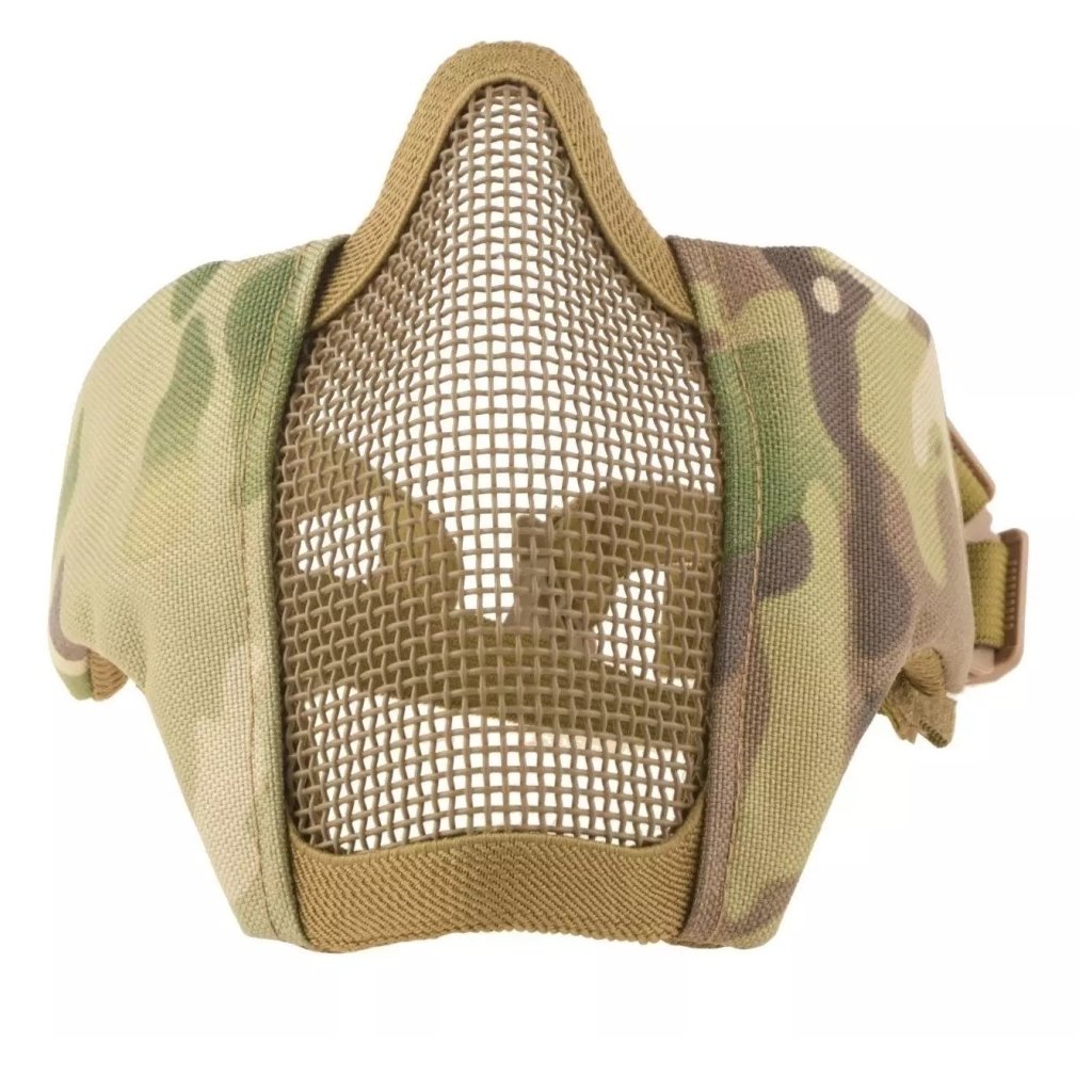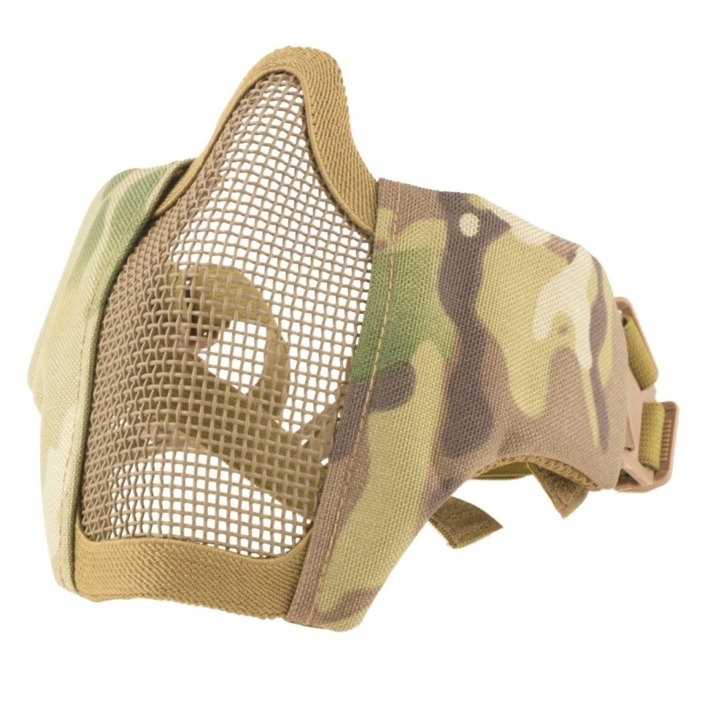Maska Mesh Mask od firmy Ultimate Tactical je důležitá část vybavení pro ochranu obličeje a úst před letícími projektily. Maska je vyrobená z nylonu a v oblasti úst a nos je umístěna kovová mřížka ve vzoru Multicam. Pouhá maska nestačí. Je nutné použít i ochranné brýle.
