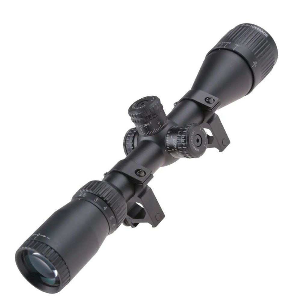 Optika 2.5-10x40 AOE s podsvětleným křížem od Theta Optics je ideální volbou pro střelce hledající kvalitu za přijatelnou cenu. Tento puškohled je uzavřen v robustním kovovém tubusu, který zaručuje vysokou odolnost a dlouhou životnost. Čirá optika s MIL-dot křížem poskytuje vynikající vizuální čistotu a přesnost, což je klíčové pro úspěšné míření.