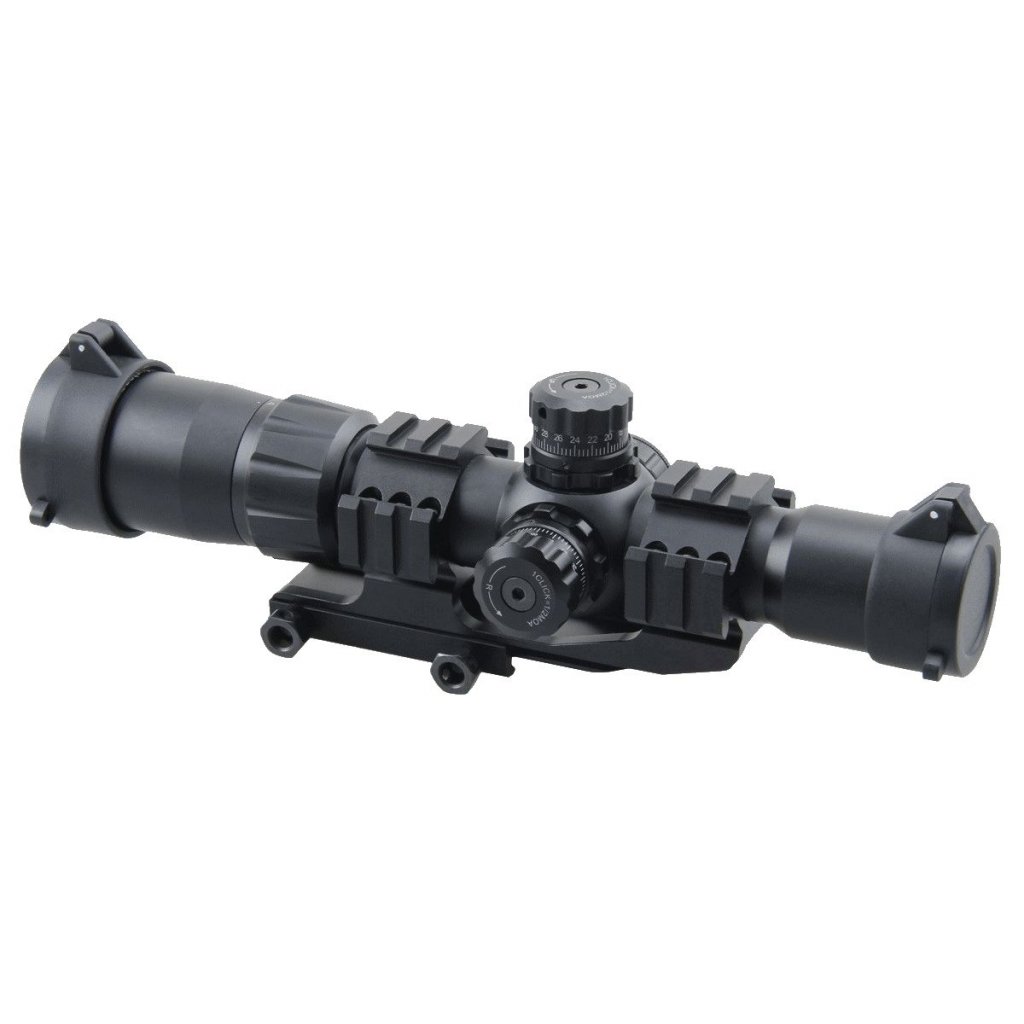 Optika umožňuje jemné nastavení zaměřování s rozsahem 60 MOA a krokem 1 MOA na klik. Dioptrická kompenzace (+2 až -2) umožňuje rychlé zaostřování. V balení je 30mm jednodílný držák, výklopné víčka a čisticí hadřík.