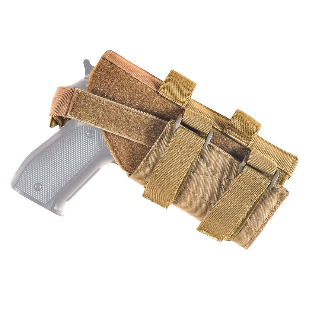 Pouzdro opaskové univerzální MOLLE (Tan) od Delta Armory je praktické a odolné řešení pro nošení pistole a základního příslušenství. Je vyrobeno z pevného nylonu a navrženo tak, aby se snadno upevnilo na běžný opasek nebo na MOLLE panel vesty a nosičů. Díky univerzálnímu tvaru je vhodné pro většinu pistolí střední velikosti a zajišťuje rychlý přístup při tasení. Nízká hmotnost a nenápadné provedení v barvě tan usnadňují každodenní nošení a kombinaci s taktickým vybavením.