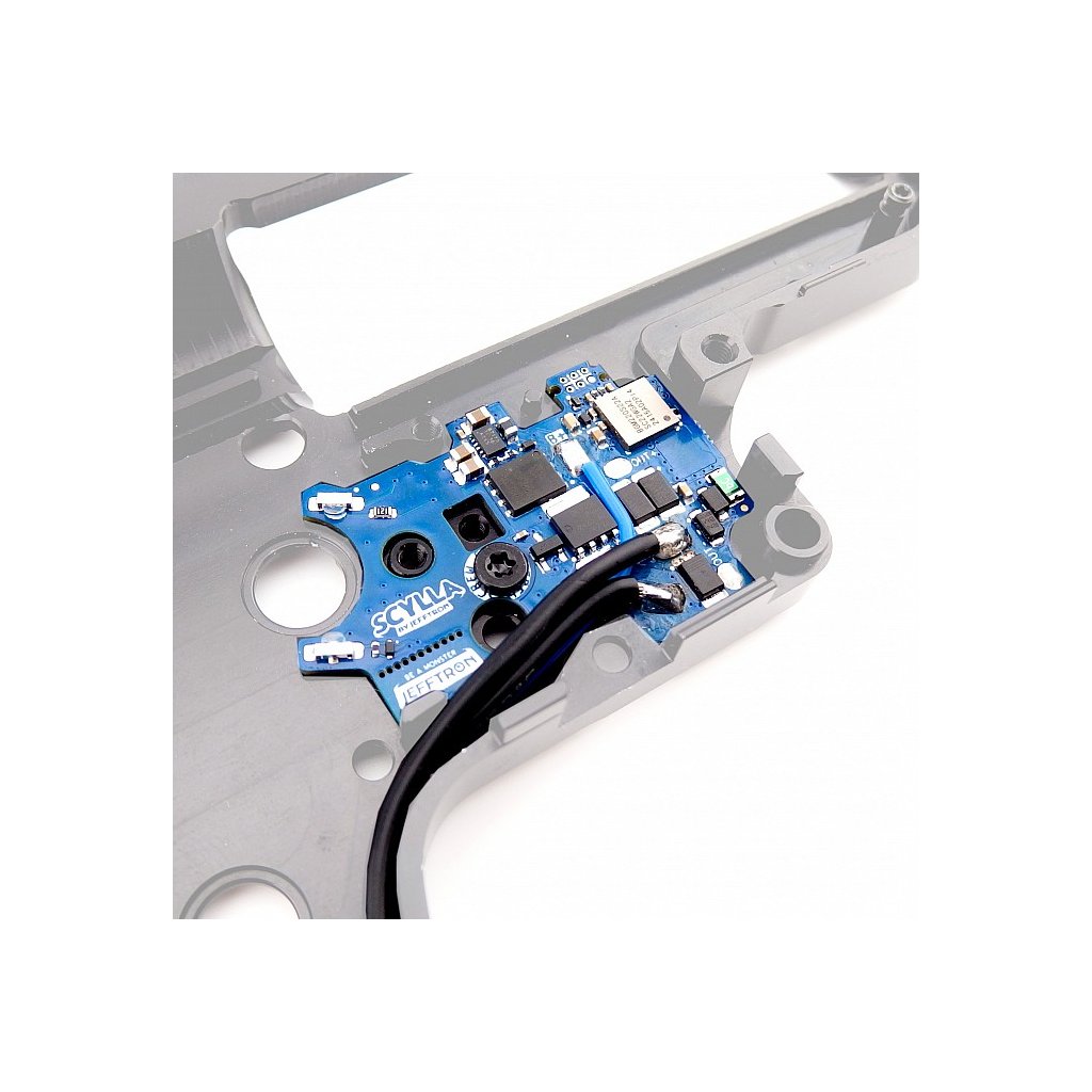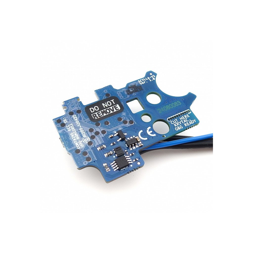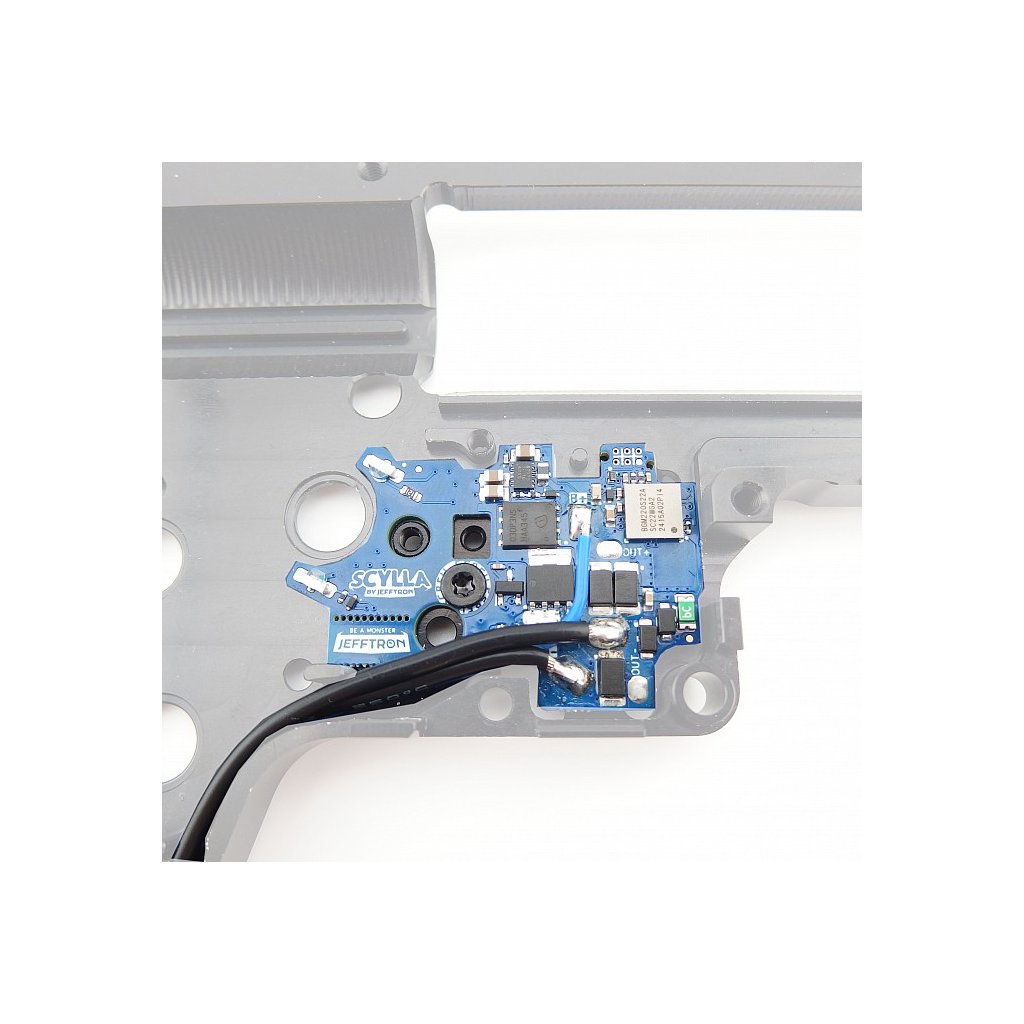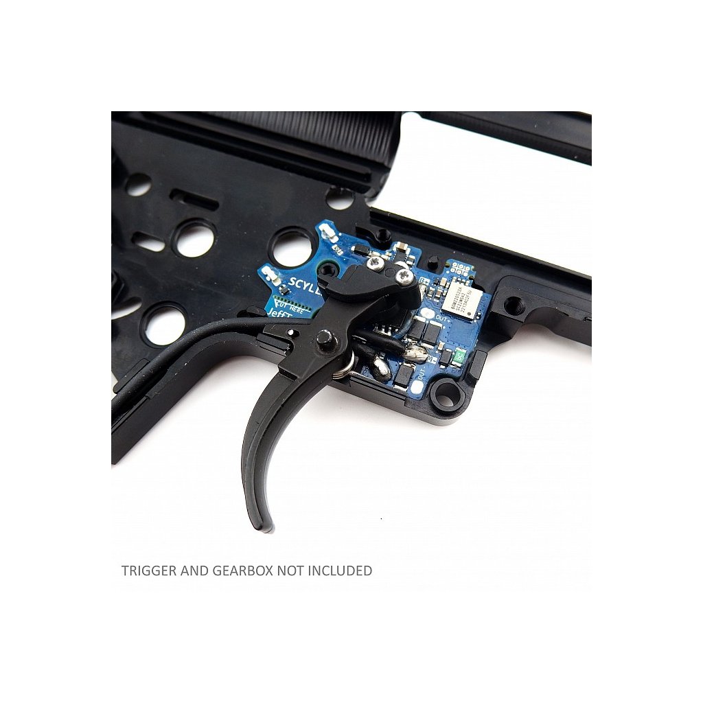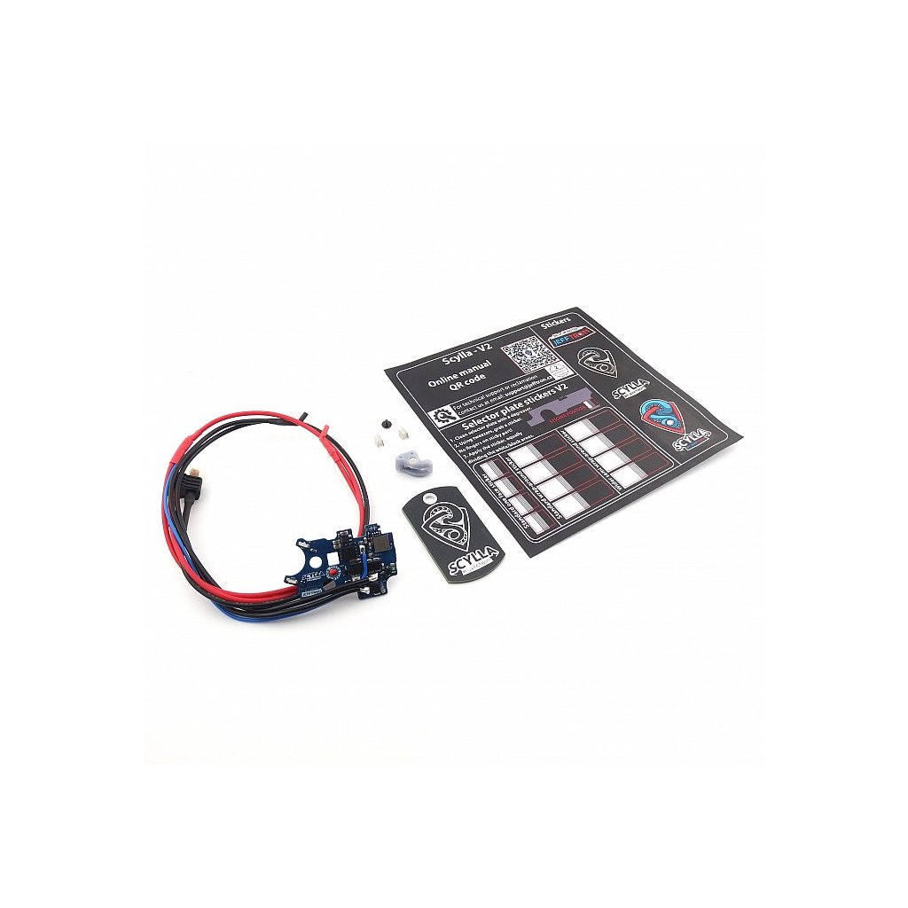 Scylla V2 je plně integrována do mechaboxu místo původních spínacích kontaktů. Instalace je snadná, nevyžaduje pájení a kabeláž je dostatečně dlouhá i pro zbraně s uložením baterie v pažbě. Využívá optický senzor pro přesné načasování střelby a optický senzor pro přepínač režimů.